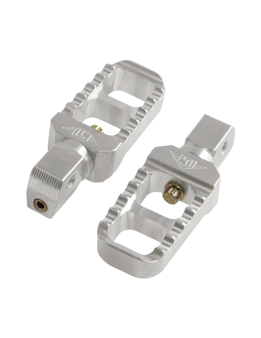 Joker MachineQueste pedane sono lavorate a CNC da barra 6061-T6. Si tratta di una struttura in 2 pezzi, resistente ma leggera, che offre una superficie del piede più ampia per una guida confortevole. La superficie dentellata offre una buona aderenza. La rotazione completa a 360 gradi li rende perfetti per qualsiasi applicazione. La vite di regolazione del passo li mantiene sempre in una buona posizione di guida. Queste pedane sono vendute in coppia e si adattano a tutte le Indian Scout 2015 a oggi e tutte Victory Octane 2017.