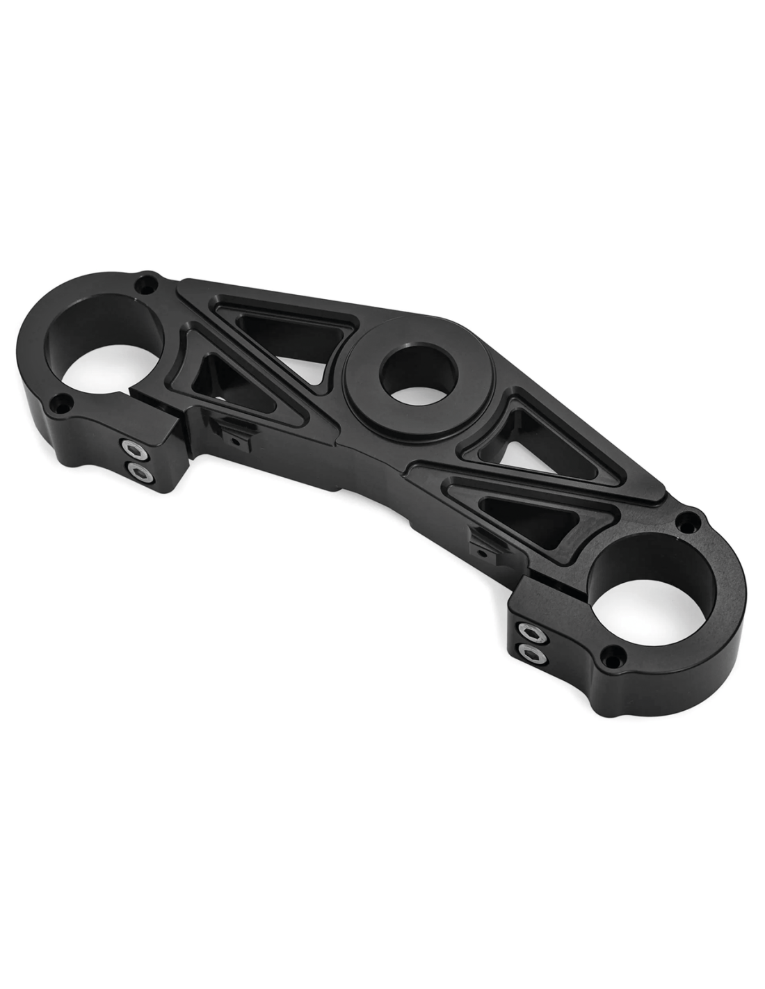 Ken's FactoryPer favore, prestate attenzione ai dettagli del design di questi piastre superiori e inferiori della forcella, realizzati e rifiniti con precisione. La piastra inferiore deve essere installata con il perno di sterzo OEM; per rimuoverlo e installarlo è necessaria una pressa idraulica. Gli alberi superiori e inferioriLe piastre inferiore e superiore sono vendute singolarmente, per cui è possibile scegliere tra tutto nero, tutto lucido o qualsiasi combinazione.