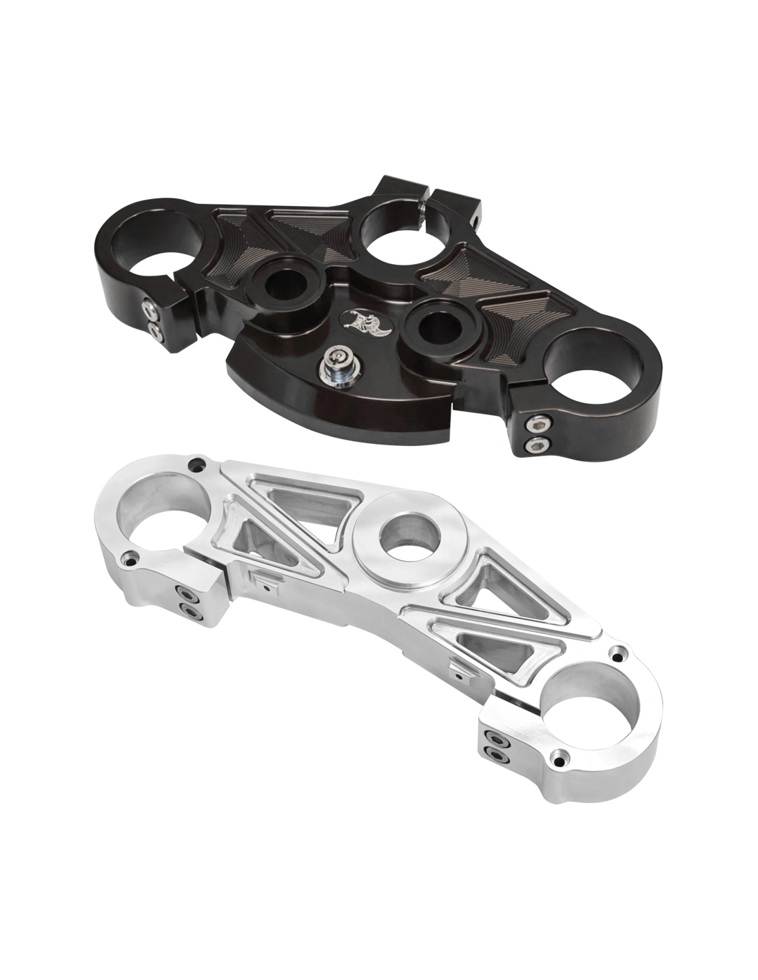 Ken's FactoryPer favore, prestate attenzione ai dettagli del design di questi piastre superiori e inferiori della forcella, realizzati e rifiniti con precisione. La piastra inferiore deve essere installata con il perno di sterzo OEM; per rimuoverlo e installarlo è necessaria una pressa idraulica. Gli alberi superiori e inferioriLe piastre inferiore e superiore sono vendute singolarmente, per cui è possibile scegliere tra tutto nero, tutto lucido o qualsiasi combinazione.