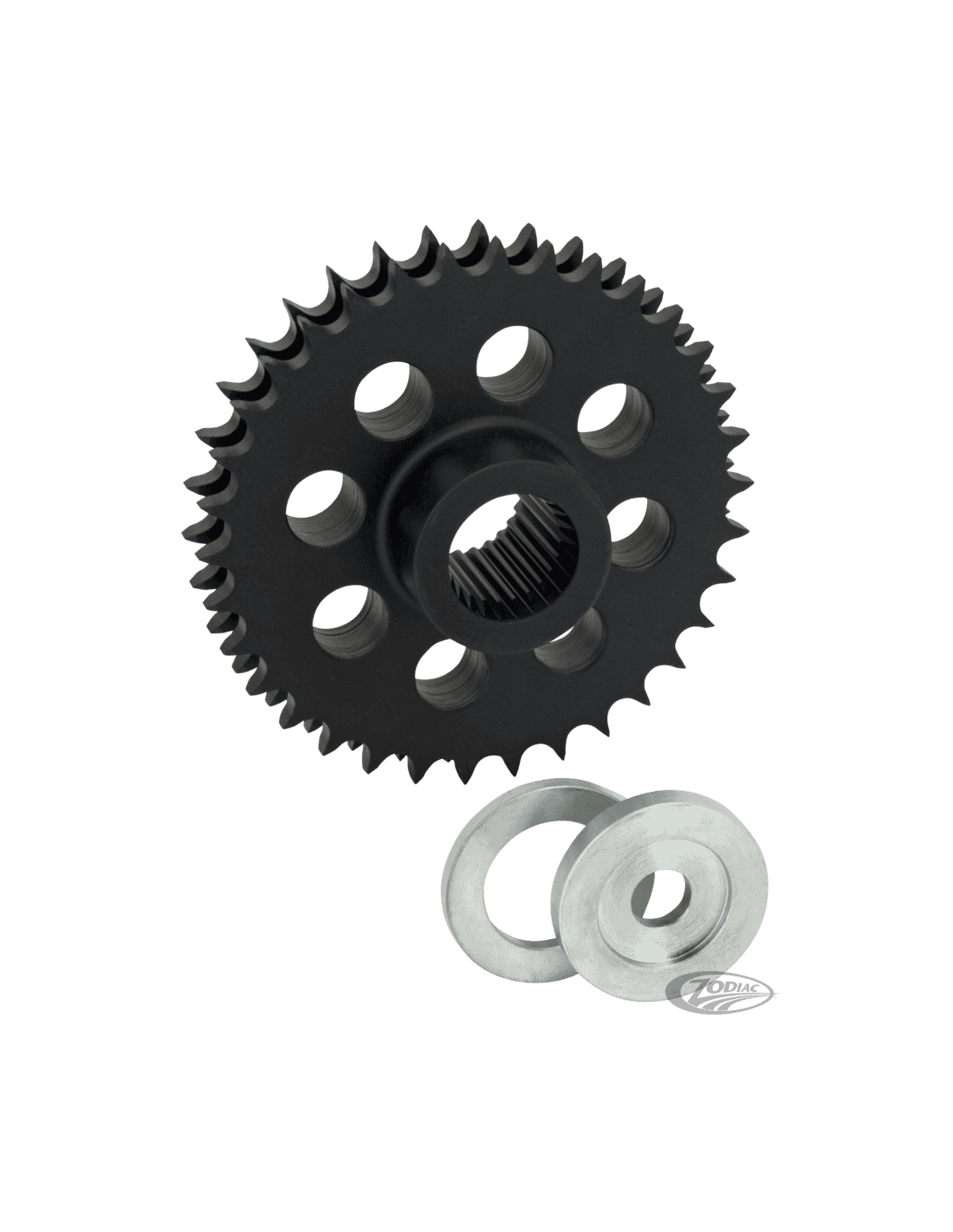 Zodiac (Genuine Zodiac Products)Questi pignoni eliminano quelli di serie con la molla a diaframma e corrono rigidi con la vostra primaria prevenendo slittamenti del vostro set up motore. Eliminano anche i problemi di disintegrazione del pignone di serie o di quello Screamin' Eagle. Questi pignoni pesano oltre la metà di quelli originali, riducendo le masse rotanti. Costruiti in acciaio con trattamento termico ad alto grado per attrezzi e ricoperto in ossido nero. La versione a 34 denti vi dà il rapporto originale, mentre quella a 32 denti aumenta l'accelerazione del 6%. Forniti completi di dettagliate istruzioni per l'installazione. La versione a 32 denti include uno speciale pattino che vi permette di usare la catena primaria di serie. Per Dyna 2006-2017, Softail 2007-2017 e Touring 2007-2016.