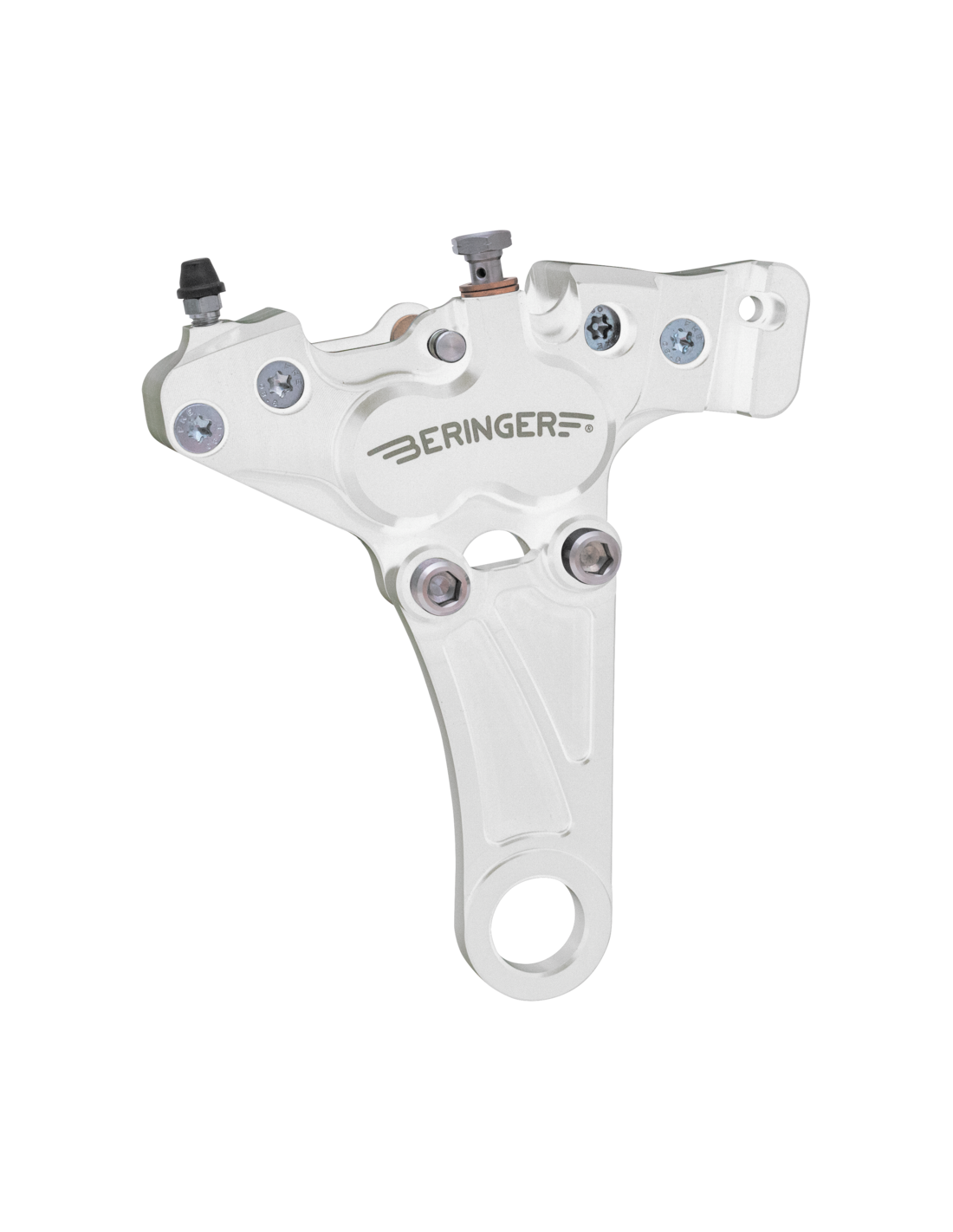 Beringer SASBeringer è produttrice di sistemi frenanti da più di 15 anni ed è apprezzata da molte aziende e team sportivi per l'affidabilità dei suoi prodotti. L'azienda ha raggiunto un decisivo vantaggio tecnologico con i suoi brevetti. I suoi sistemi frenanti sono certificati secondo le norme ISO 9001 e sono approvati. Le pinze sono ricavate da alluminio aeronautico, lo stesso materiale usato per le ali degli aerei supersonici. Questo materiale unisce peso ridotto ed alta resistenza alla deformazione anche ad alte temperature. I pistoni sono fatti in alluminio inossidabile, che conduce un tredicesimo del calore condotto dall'alluminio comune, con il vantaggio di isolare le pinze del calore generato dall'attrito delle pastiglie. In aggiunta l'alluminio inossidabile elimina la possibilità di corrosione. Tutte le pinze sono lavorate a CNC con i più alti standard lavorativi garantendo e ottimizzando lo spessore del materiale. Le pinze Beringer si distinguono per la frenata potente e veloce ottenuta con una corsa costante della leva. Con queste pinze basta una pressione di soli 16.5 bar per ottenere una frenata ottimale a differenza delle altre pinze dove sono necessari almeno 20 bar per ottenere lo stesso risultato. Sono disponibili per l'anteriore e per il posteriore nelle versioni 4 pistoni o 6 pistoni nelle finiture lucidata, anodizzata nera o cromata.