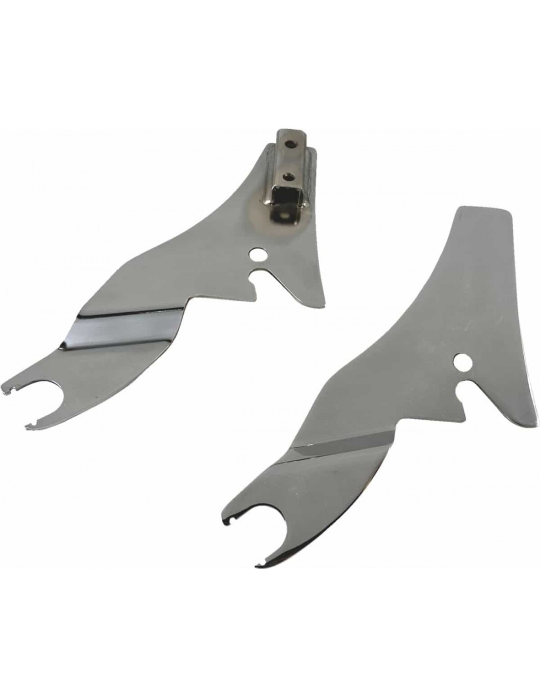 Piastrine esterne a sgancio rapidoCompatibili con qualsiasi sissybar Drag Specialties quadrato o tondo da 11” Compatibili con materiale di montaggio standard HD rimovibile Materiale di montaggio non incluso Made in USA
