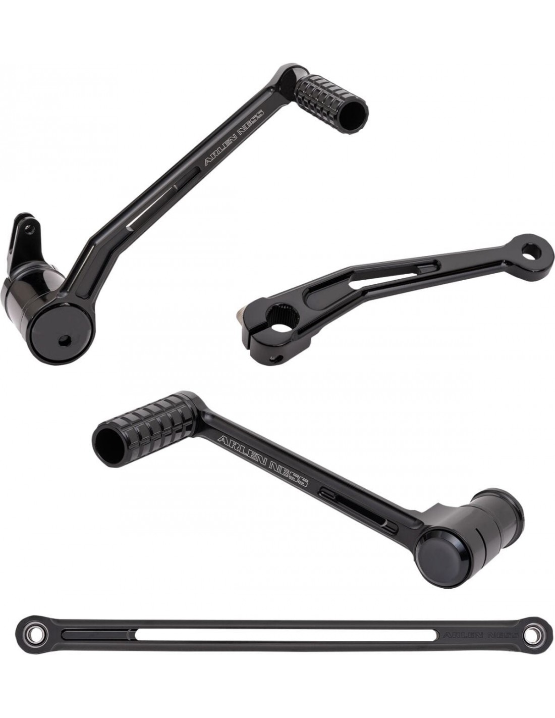Kit comando a pedale speedlineril design ricavato dal pieno zigrinato 3d migliora drasticamente lo stile del comando a pedale aggiungendo trazione costruzione in alluminio billet lavorato a cnc il kit include il freno braccio, asta del cambio, braccio del cambio interno e amp; sia un cambio singolo che tallone/punta con picchetti l'asta del cambio è dotata di cuscinetti sferici appositamente progettati per un look ultra pulito, eliminando la necessità di giunti a snodo ' i modelli dal 00 al '07 richiedono l'adattatore per il braccio del freno 1610-0632 (venduto separatamente).