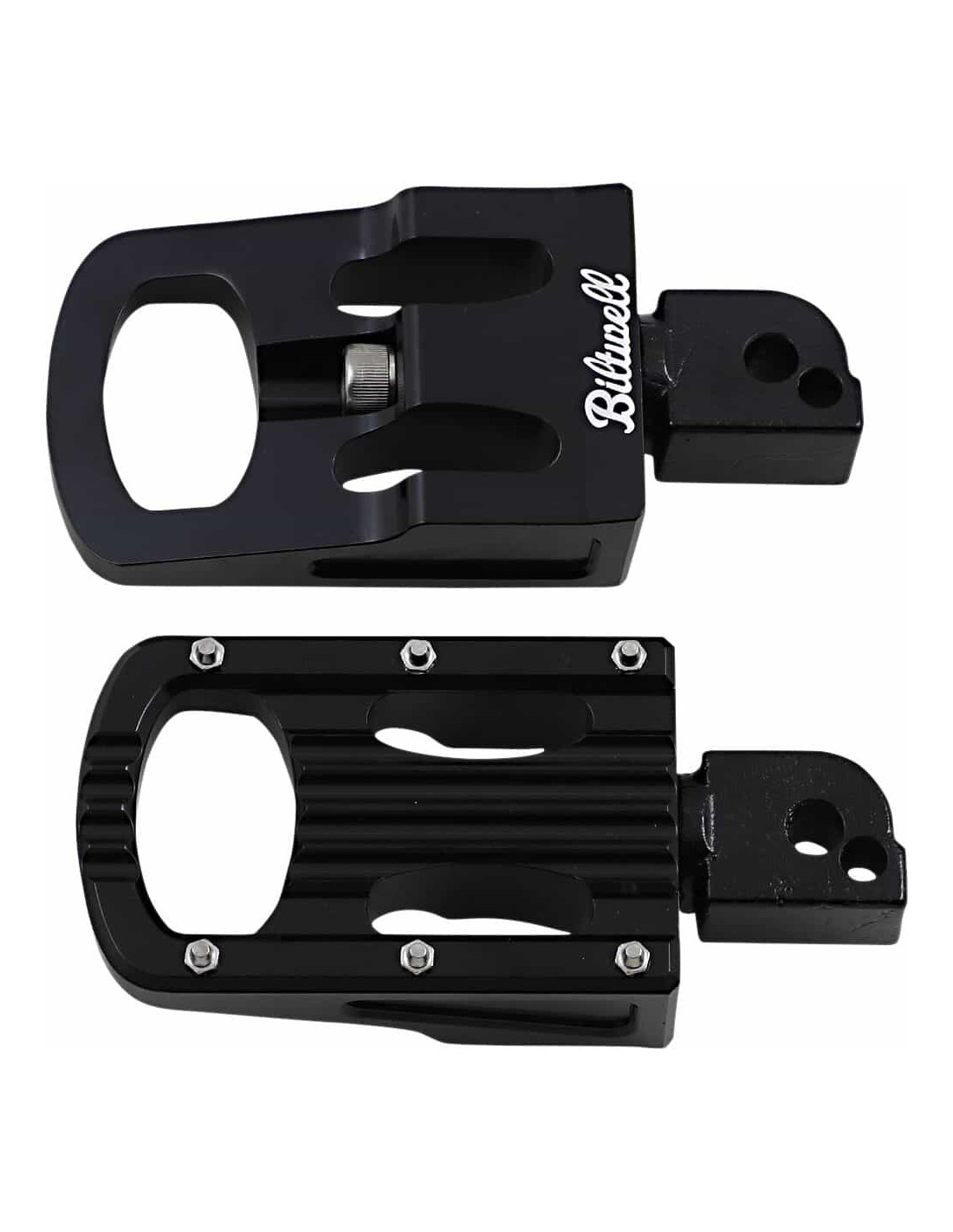 BiltwellPoggiapiedi PunisherIn alluminio billet 6061-T6 lavorato a CNC e concepito per completare la tecnica e l'estetica delle moto Harley-Davidson® moderne Perni di trazione in acciaio inossidabile Snodo in cromo molibdeno lavorato per microfusione 4130 Materiale per il montaggio in acciaio inossidabile