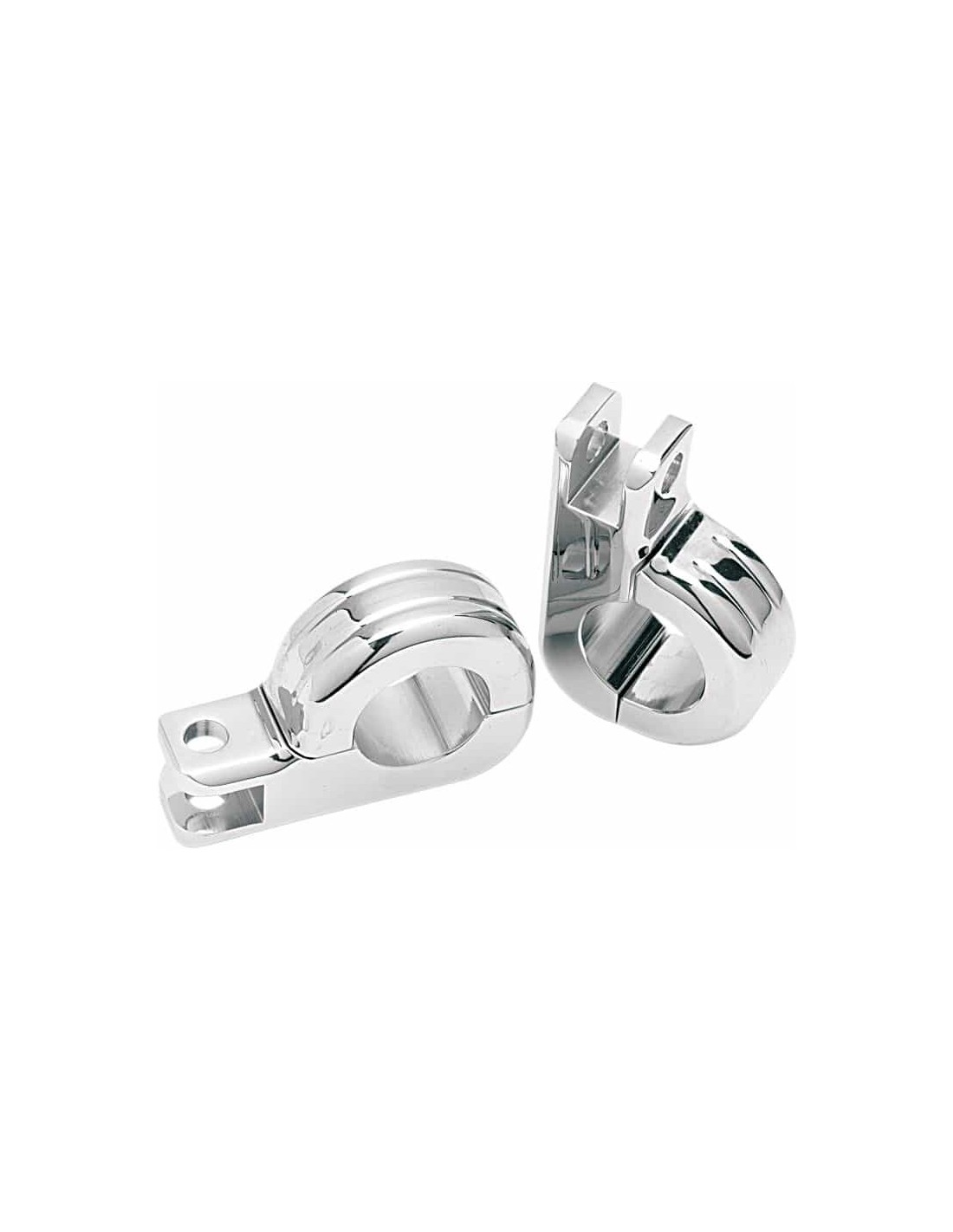 Drag SpecialtiesAttacchi per poggiapiedi a due pezziRealizzato in alluminio billet lavorato a CNC, disponibile in versione cromata Compatibili con paramotore o telaio da 1-1/4" li> Compatibili con i poggiapiedi con attacco maschio