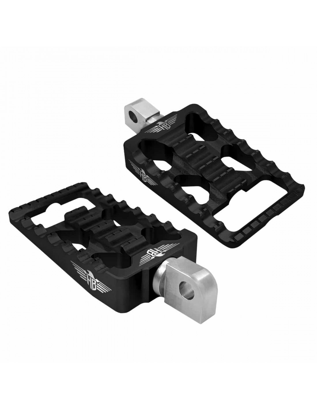 Poggiapiedi per HarleyI poggiapiedi possono essere ruotati di 360 gradi in qualsiasi angolazione e quindi bloccati con fibbie in acciaio inox (incluse) Vendita in coppia Laminato in alluminio con tecnologia CNC di alta qualità Montaggio semplice con dado e filetto M8