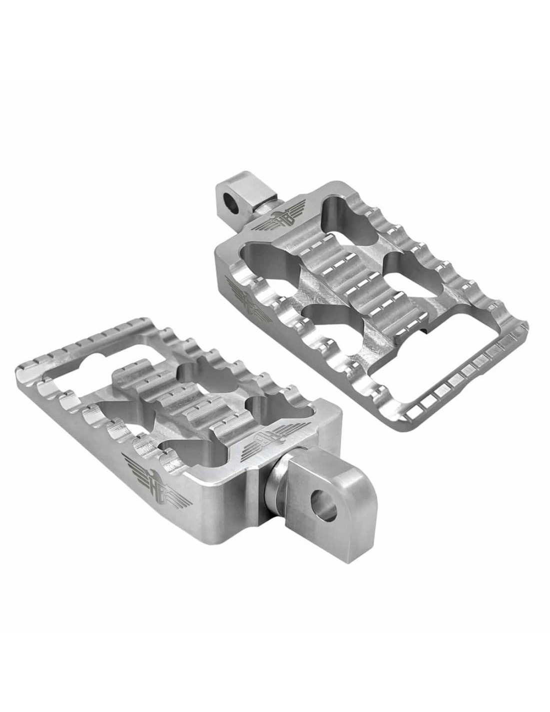 Poggiapiedi per HarleyI poggiapiedi possono essere ruotati di 360 gradi in qualsiasi angolazione e quindi bloccati con fibbie in acciaio inox (incluse) Vendita in coppia Laminato in alluminio con tecnologia CNC di alta qualità Montaggio semplice con dado e filetto M8