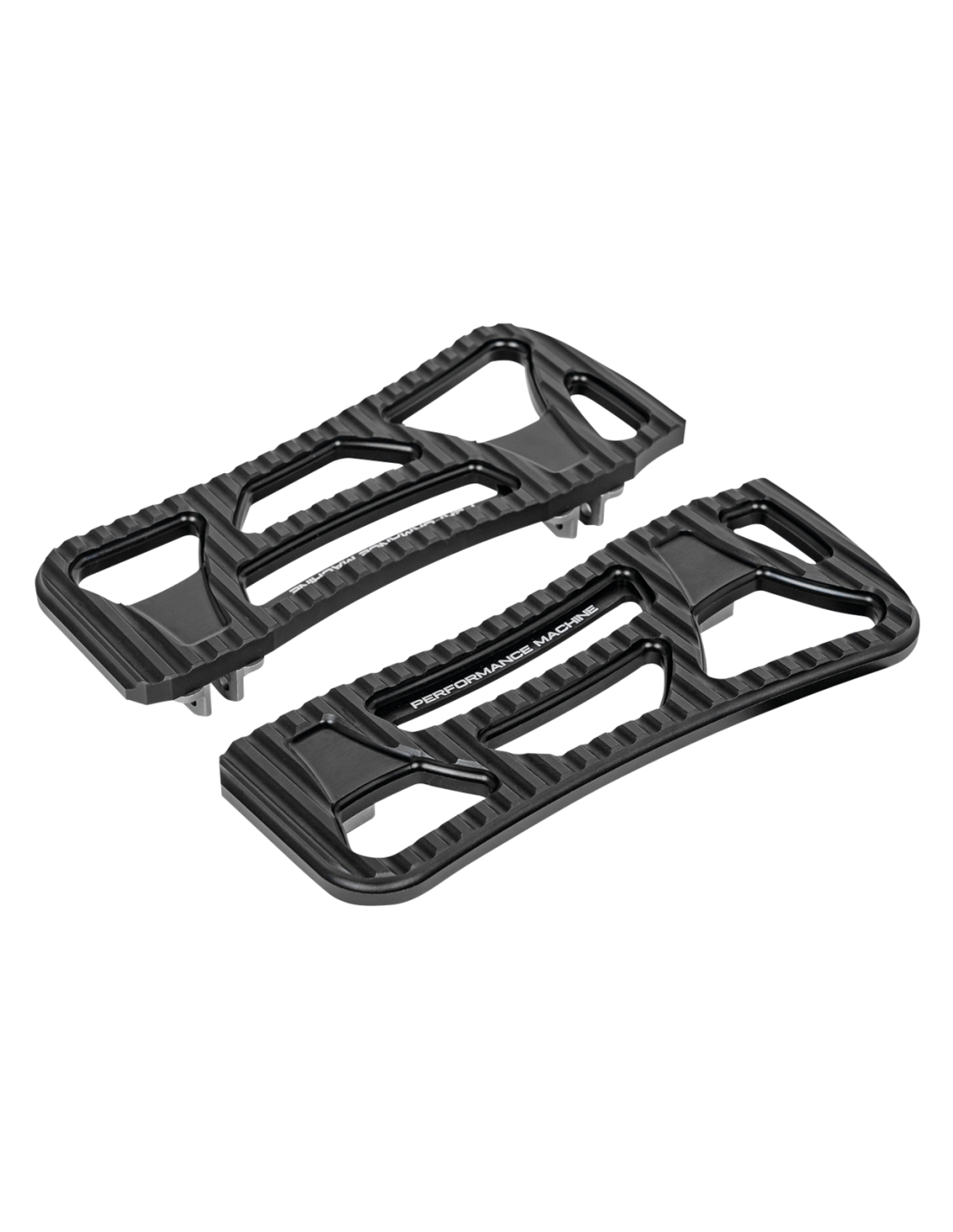 Performance MachineLe pedane Drifter di Performance Machine conferiscono un look da bagger performante senza sacrificare il comfort. Il profilo complessivo è corto e sottile, ma sifissano nella posizione di serie per migliorare l'altezza da terra e mantenere la comodità di utilizzare le staffe OEM. Le pedane sono lavorate in alluminio billet e rivestite con l'esclusivo Black OPS bicolore di PM che si abbina perfettamente alla finitura nera di serie del motore delle Harley.
