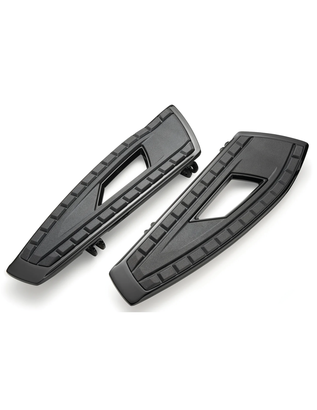 Le pedane possono definire il look di una moto. Le pedane Chicane catturano immediatamente l'attenzione con il loro design, ma non sono solo una bella faccia. Progettate per garantire al pilota il massimo comfort e le massime prestazioni in tutte le condizioni stradali. Queste pedane ridefiniscono le prestazioni dei pianali. Le pedane del conducente sono più lunghe di 8,9 cm (3 1/2") rispetto a quelle di serie, sono dotate di gommini EPDM antivibrazioni e di sei diverse posizioni di montaggio, tra cui 1/2" in avanti, 1/2" indietro e 1/2" verso l'esterno. La parte anteriore della punta del piede è leggermente rialzata per garantire il comfort. Gli inserti della pedana passeggero si adattano alle pedane OEM.