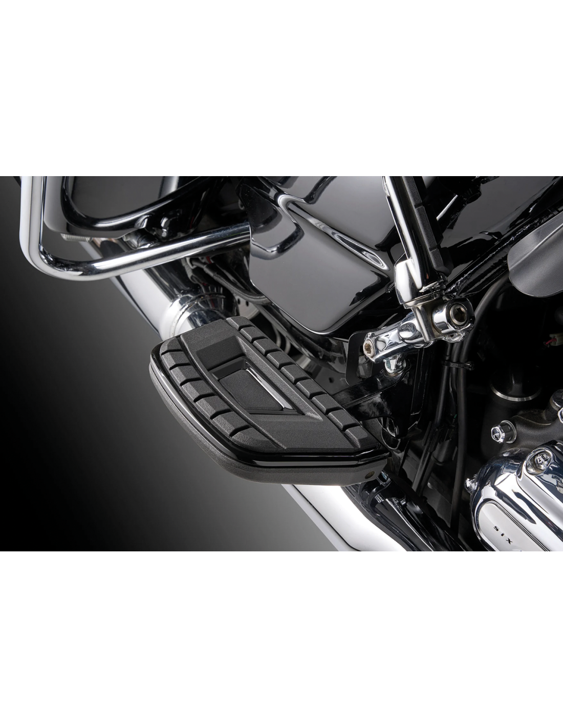 Le pedane possono definire il look di una moto. Le pedane Chicane catturano immediatamente l'attenzione con il loro design, ma non sono solo una bella faccia. Progettate per garantire al pilota il massimo comfort e le massime prestazioni in tutte le condizioni stradali. Queste pedane ridefiniscono le prestazioni dei pianali. Le pedane del conducente sono più lunghe di 8,9 cm (3 1/2") rispetto a quelle di serie, sono dotate di gommini EPDM antivibrazioni e di sei diverse posizioni di montaggio, tra cui 1/2" in avanti, 1/2" indietro e 1/2" verso l'esterno. La parte anteriore della punta del piede è leggermente rialzata per garantire il comfort. Gli inserti della pedana passeggero si adattano alle pedane OEM.