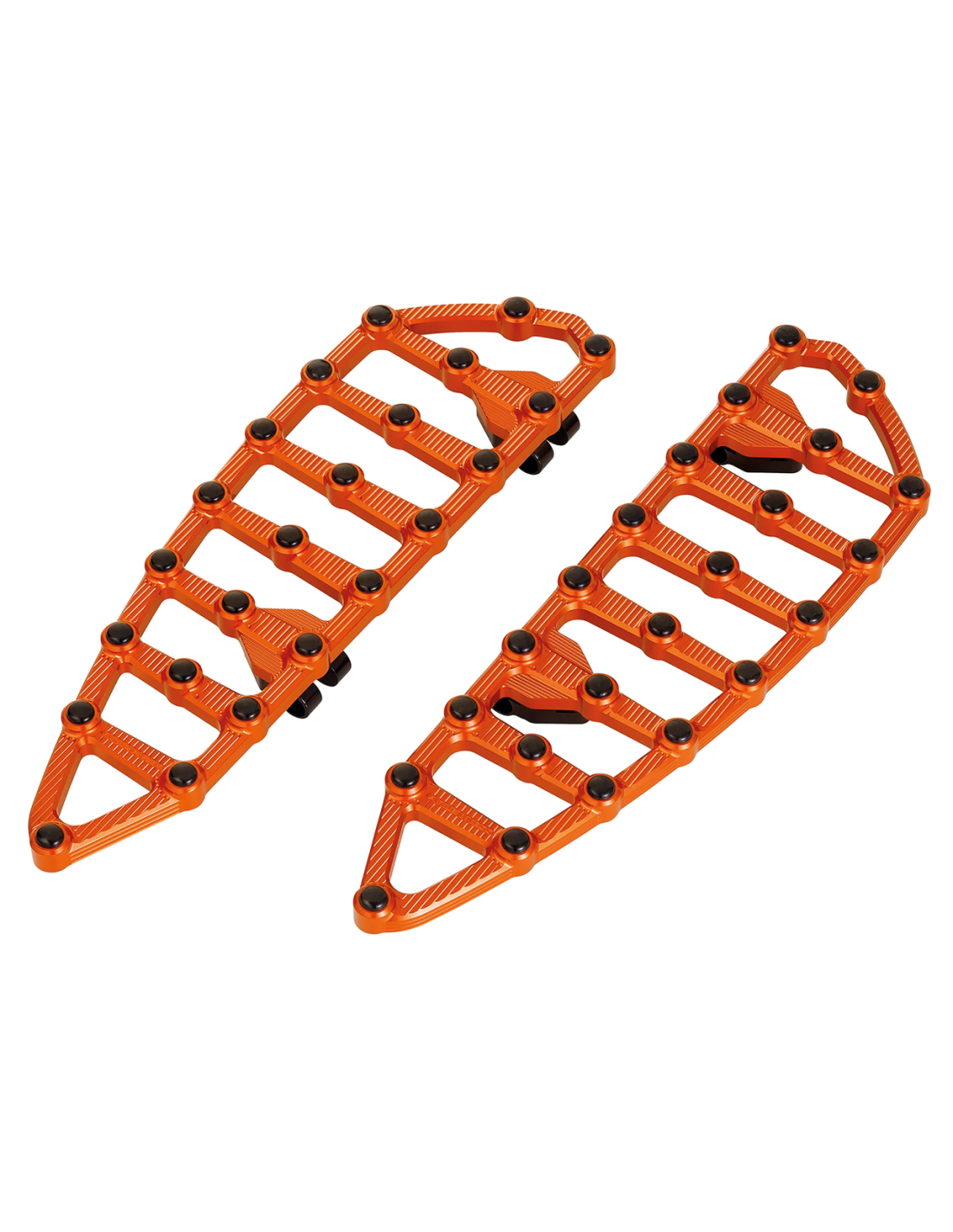 Arlen NessLe pedane Ness MX hanno un design dettagliato con inserti in gomma integrati per aumentare l’aderenza. In alluminio billet lavorato a CNC sono allungate per aggiungere spazio e comfort. Disponibili cromate o anodizzate nere. Le pedane guidatore sono lunghe 18" (45.8cm), larghe 5 3/4" (14.6cm). Le pedane passeggero sono lunghe 8" (20.3cm), larghe 4 1/4" (10.8cm).