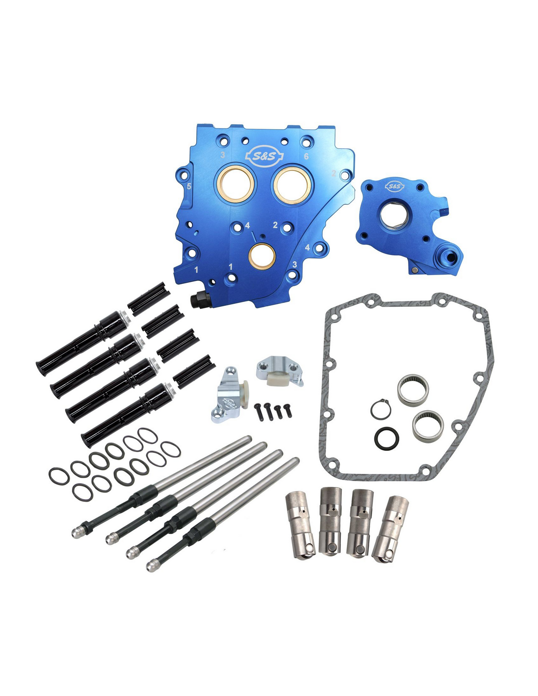 C'è molto di più nella vostra cassa camme oltre a quelle, perchè non aggiornate tutto in una volta sola? Per questo S&S ha progettato questi convenienti kit. Potete aggiornare con camme più performanti e sostituire la vostra pompa olio di serie, la piastra di supporto delle camme, le aste e le punterie con delle nuove parti di S&;S . Tutti i kit aggiornano il vostro modello più vecchi a un sistema di lubrificazione con una pompa dell'olio più recente e ai tendicatena idraulici S&S. Avrete migliori prestazioni, una maggiore pressione dell'olio e non avrete più problemi riguardanti la distribuzione delle camme. I kit sono disponibili anche con le camme S&S con guida ad ingranaggio. Il kit senza camme è disponibile quando si desidera combinare tutti i vantaggi di questi kit S&S con un albero a camme Andrews, Star Racing, Zippers Red Shift o di altra marca.