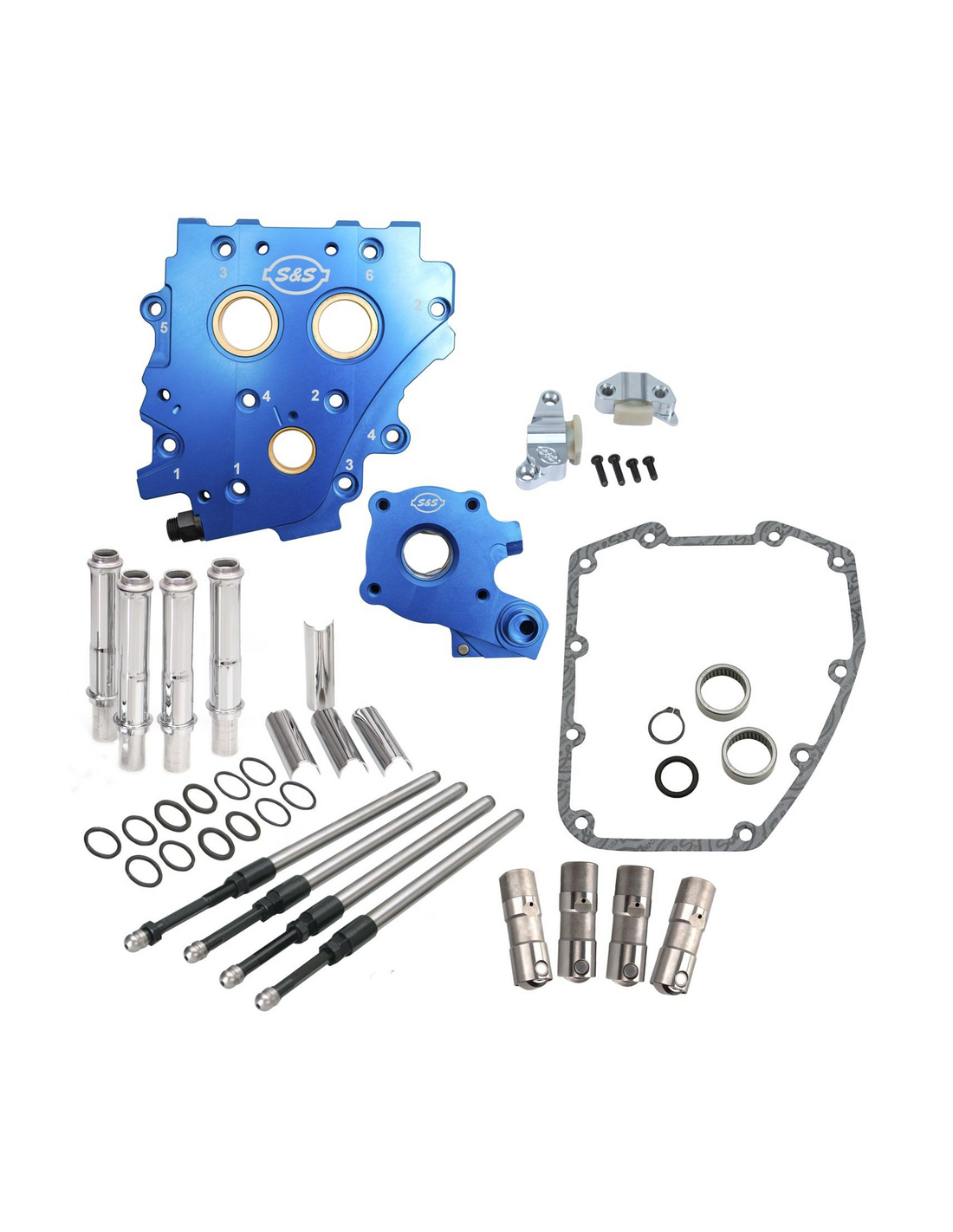 C'è molto di più nella vostra cassa camme oltre a quelle, perchè non aggiornate tutto in una volta sola? Per questo S&S ha progettato questi convenienti kit. Potete aggiornare con camme più performanti e sostituire la vostra pompa olio di serie, la piastra di supporto delle camme, le aste e le punterie con delle nuove parti di S&;S . Tutti i kit aggiornano il vostro modello più vecchi a un sistema di lubrificazione con una pompa dell'olio più recente e ai tendicatena idraulici S&S. Avrete migliori prestazioni, una maggiore pressione dell'olio e non avrete più problemi riguardanti la distribuzione delle camme. I kit sono disponibili anche con le camme S&S con guida ad ingranaggio. Il kit senza camme è disponibile quando si desidera combinare tutti i vantaggi di questi kit S&S con un albero a camme Andrews, Star Racing, Zippers Red Shift o di altra marca.