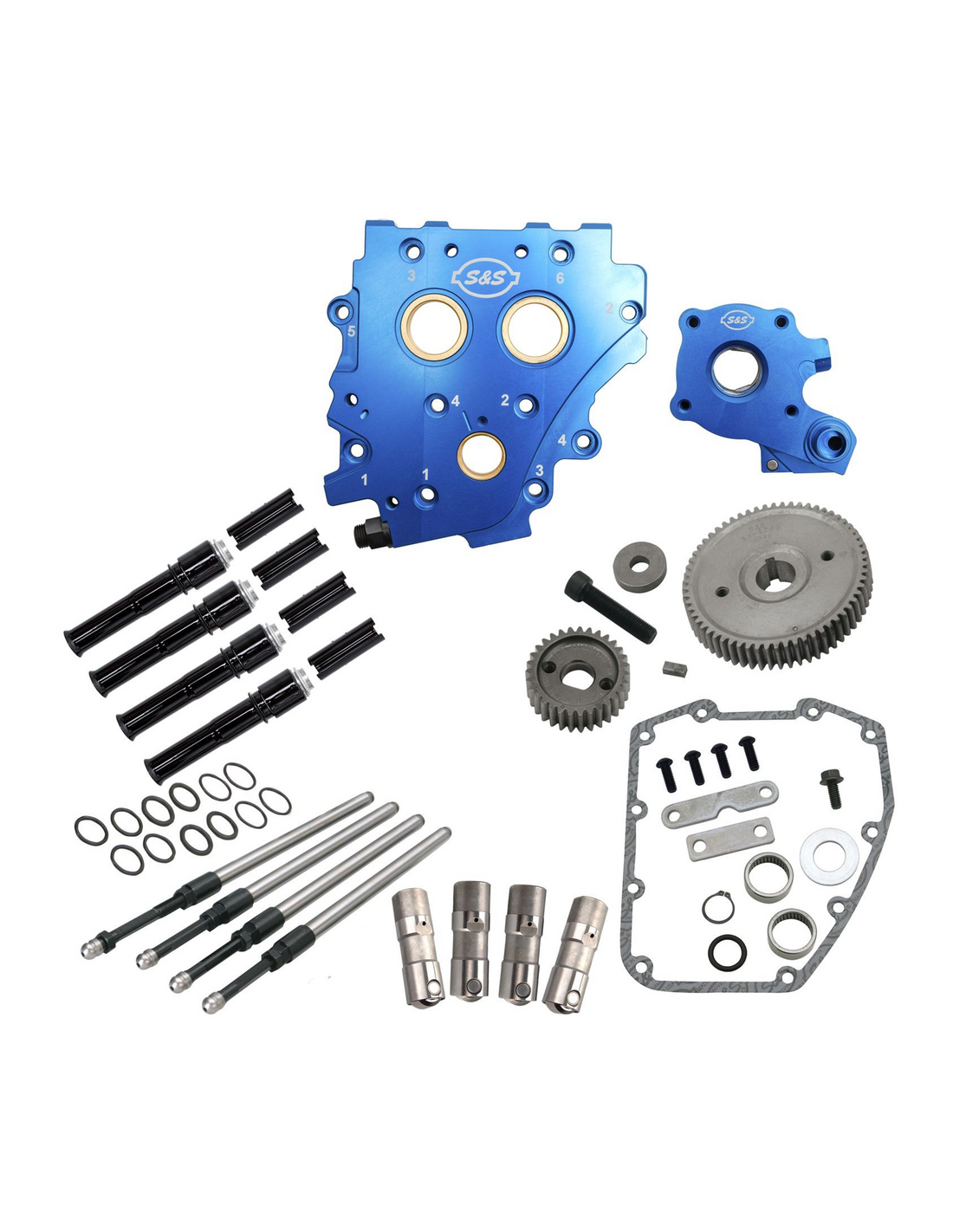 C'è molto di più nella vostra cassa camme oltre a quelle, perchè non aggiornate tutto in una volta sola? Per questo S&S ha progettato questi convenienti kit. Potete aggiornare con camme più performanti e sostituire la vostra pompa olio di serie, la piastra di supporto delle camme, le aste e le punterie con delle nuove parti di S&;S . Tutti i kit aggiornano il vostro modello più vecchi a un sistema di lubrificazione con una pompa dell'olio più recente e ai tendicatena idraulici S&S. Avrete migliori prestazioni, una maggiore pressione dell'olio e non avrete più problemi riguardanti la distribuzione delle camme. I kit sono disponibili anche con le camme S&S con guida ad ingranaggio. Il kit senza camme è disponibile quando si desidera combinare tutti i vantaggi di questi kit S&S con un albero a camme Andrews, Star Racing, Zippers Red Shift o di altra marca.