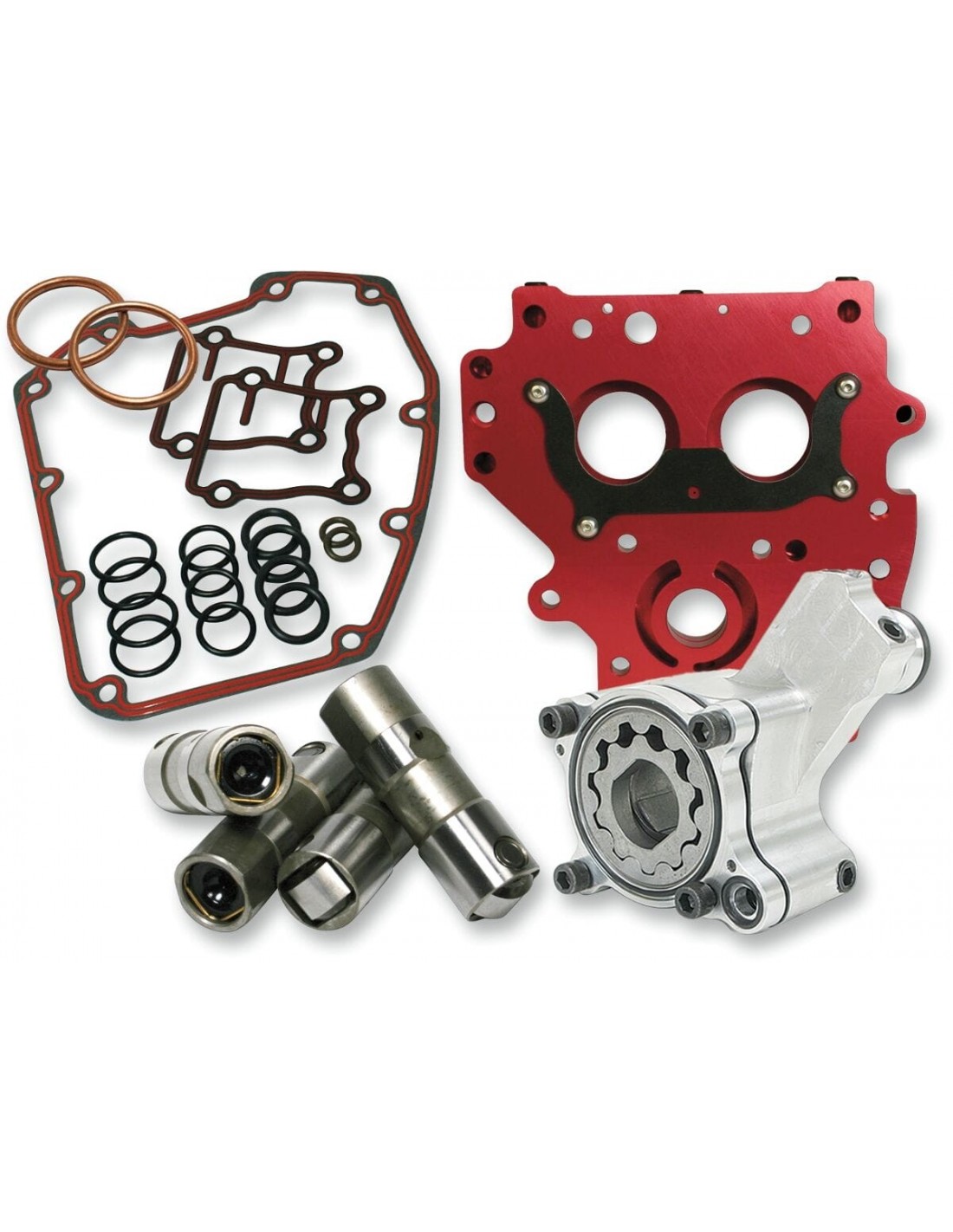 Feuling Oil Pump Corp.Kit impianto di lubrificazione hp+®combina tutti i componenti necessari per completare il tuo sistema di lubrificazione del motore t/c® questi kit consentono di aumentare la pressione dell' olio, il volume dell'olio, il flusso dell'olio motore e il recupero dell'olio di ritorno, eliminando il problema della trasudazione di olio sul carter e di filtri aria oleosi; secondo risultati di test, include piastra di tenuta cuscinetto e minuteria