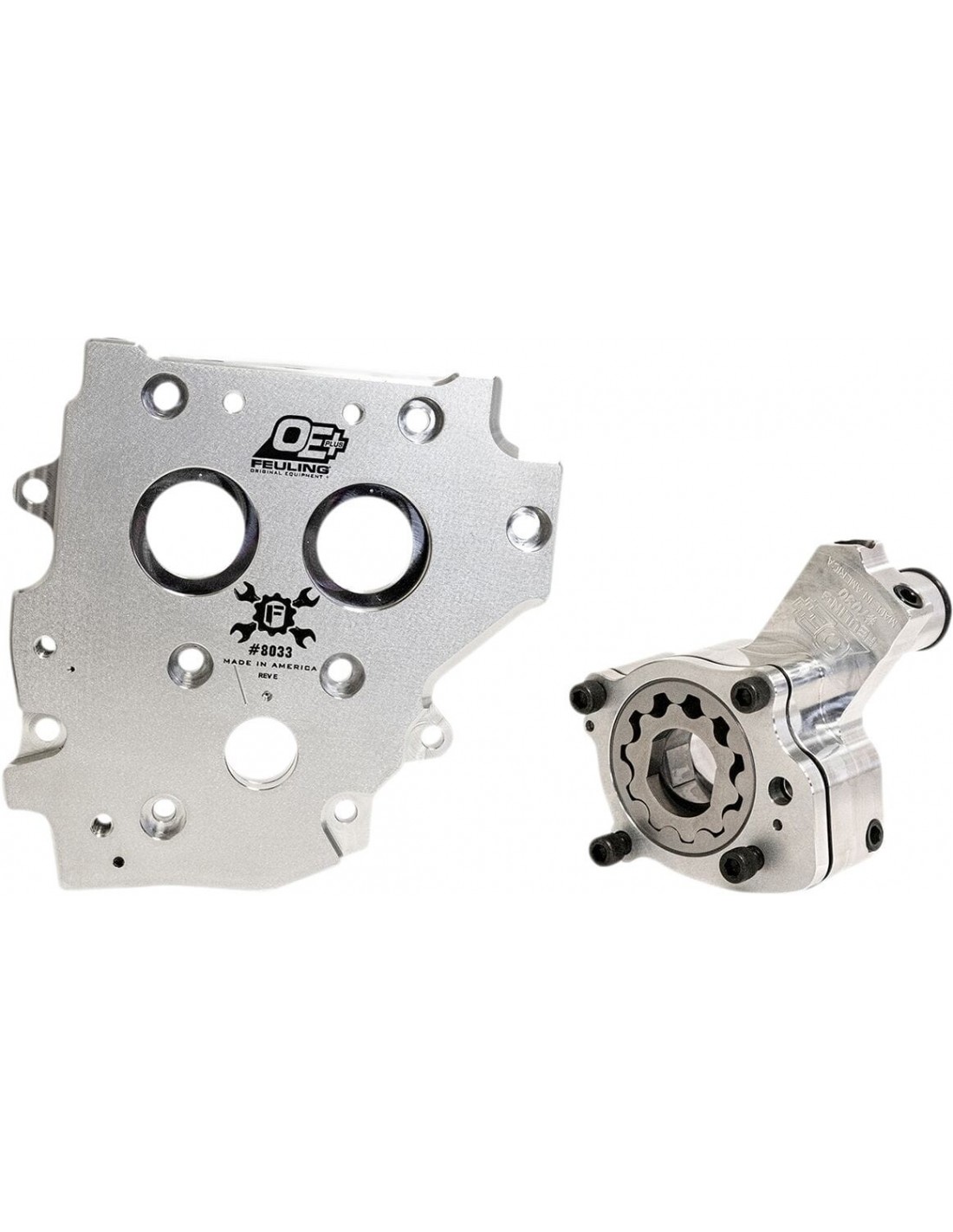 Feuling Oil Pump Corp.Kit pompa olio oe+/piastra albero a cammei kit rappresentano un aggiornamento rispetto al sistema di lubrificazione originale, in quanto offrono una maggiore pressione e volume dell'olio in ritorno da una pompa oe+ e dalla relativa piastra camme, entrambe in alluminio billet (fare riferimento al le piastre albero a camme in billet oe+ presentano una maggiore rigidità e sono lavorate a tolleranze più rigide rispetto alle originali la valvola di depressurizzazione e la molla della piastra albero a camme oe+ sono preimpostate, combinate e messe in sede da feuling® con una pressione di scarico di 50-60 psi made in usa br>