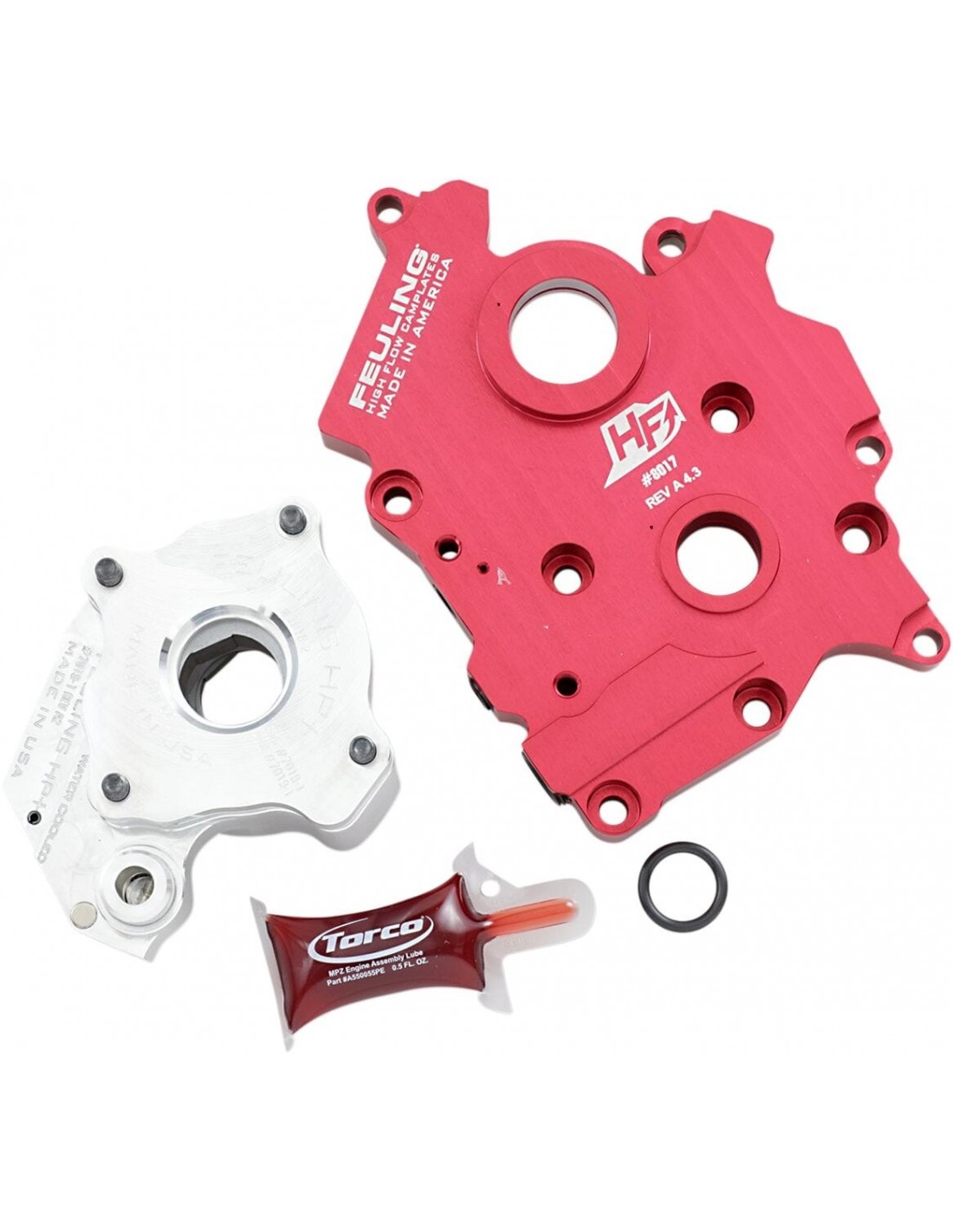 Feuling Oil Pump Corp.Pompa olio ad alto volume hp+®consentono di aumentare la pressione dell'olio, il volume dell'olio, il flusso dell'olio motore e il recupero dell'olio di ritorno funzionamento del motore più silenzioso e fluido le temperature del motore sono più basse di 15°-25° le temperature dell'olio sono più basse di 15°- 30° pressione olio maggiore di 10-30 psi ridurre la trasudazione di olio sul carter, trafilaggio e filtri aria oleati i test mostrano un guadagno di potenza di 2 cv e un guadagno di coppia di 2 ft/lb sulla ruota posteriore nel caso di motori m-eight i risultati dei test feuling mostrano una riduzione del 50% del livello olio motore include una pompa olio ad alto volume in alluminio 6061 e la piastra albero a camme ad alto flusso di feuling® realizzata in alluminio 7075 che è il 50% più dura e resistente delle piastre albero a camme di fabbrica oe+ feuling incrementano il flusso d'olio e il volume allargando i serbatoi della pompa olio ei passaggi d'olio, facendo anche corrispondere i fori di passaggio olio sulla piastra ai fori nel carter motore, il che aumenta il flusso d'olio motore alle punterie, ai g le pompe olio sono testate su banchi di prova, la valvola di sfiato è in sede ea tenuta, fino a un minimo di 30 psi con pieno pompaggio fino a 55-60 psi li> il volume d'olio è aumentato dagli ingranaggi più grandi e dai passaggi correttamente dimensionati lungo la sede valvola di depressurizzazione e la tenuta sono essenziali per un corretto funzionamento del sistema di lubrificazione la combinazione di pompa olio e piastra albero a camme elimina le problematiche comuni di mandata e ritorno associati ai sistemi di lubrificazione di fabbrica volume olio nella girandola in mandata e ritorno rispettivamente del 30% e del 53% in più rispetto all'originale e un volume olio in ritorno del 42% in più grazie alle dimensioni dei condotti adattate ea passaggi e fori adatti al carter motore made in usa