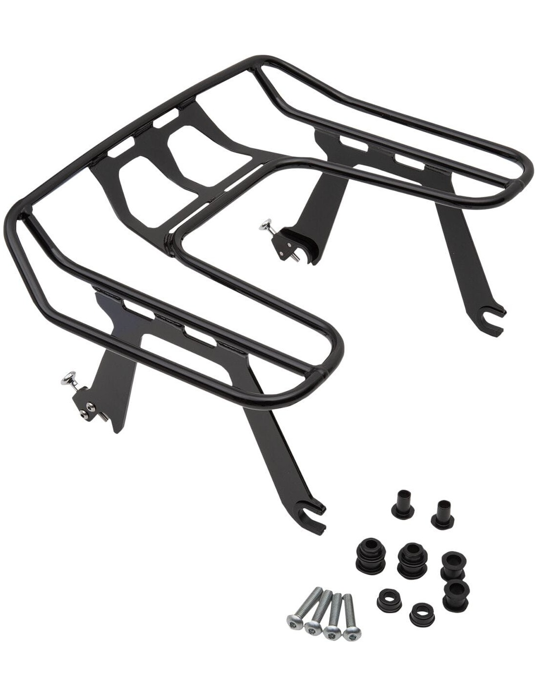 CobraPortapacchi avvolgente big ass® rimovibilela parte superiore del portapacchi è approssimativamente allo stesso livello della parte superiore della sella e ogni portapacchi è dotato di un sollevamento sul lato posteriore vi sono dei punti in cui fissare corde elastiche o cinghie di montaggio in maniera tale da non dover più graffiare il parafango della moto quando si fissa il carico materiale per il montaggio incluso made negli usa non sono compatibili né richiedono kit di montaggio harley davidson. se si utilizza una sella aftermarket diversa da saddlemen o lucky daves controllare attentamente le misure dell'apertura per assicurare che il portapacchi sia compatibile con la sella della moto