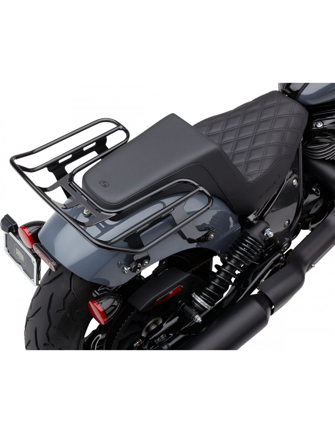 CobraPortapacchi avvolgente big ass® rimovibilela parte superiore del portapacchi è approssimativamente allo stesso livello della parte superiore della sella e ogni portapacchi è dotato di un sollevamento sul lato posteriore vi sono dei punti in cui fissare corde elastiche o cinghie di montaggio in maniera tale da non dover più graffiare il parafango della moto quando si fissa il carico materiale per il montaggio incluso made negli usa non sono compatibili né richiedono kit di montaggio harley davidson. se si utilizza una sella aftermarket diversa da saddlemen o lucky daves controllare attentamente le misure dell'apertura per assicurare che il portapacchi sia compatibile con la sella della moto non compatibile con borse laterali o supporti oem.