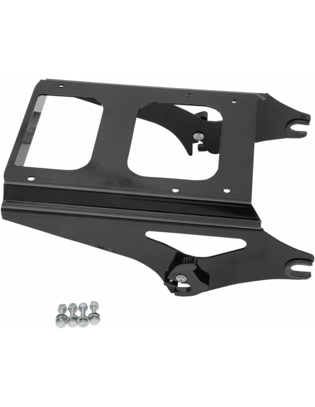 Supporto per bauletto a sgancio rapidoConsente una rapida rimozione dei Tour Box sui modelli Dresser Compatibile con supporto a sgancio rapido OEM In resistente acciaio Forato secondo lo schema delle viti di montaggio sui bauletti dal 2006 in poi; include minuteria per l'attacco del bauletto su un supporto a sgancio rapido