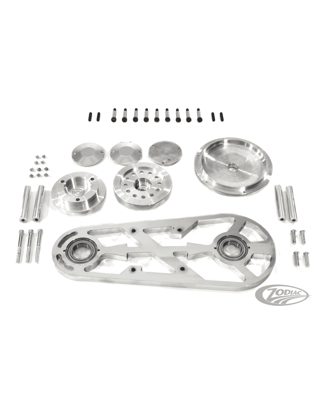 V-TwinUn kit completo di primaria da 3" che contiene la cinghia, frizione completa, pulegge anteriore e posteriore, paracinghia laterale, piastre motore in alluminio billet, alloggio pignone ed ingranaggio avviamento. Ci sono molte primarie da 3" sul mercato attuale, alcuni più completi di questa ma nessuna con lo stesso rapporto qualità/prezzo. Per coloro che lo richiedono è disponibile un supporto esterno che deve essere ordinato separatamente. Un'altra opzione è la "Auto Clutch", una frizione semiautomatica impostata. Quando installi questa frizione automatica, puoi semplicemente innestare la marcia, tirare il freno e rilasciare la frizione. Quindi puoi anche rilasciare la leva del freno anteriore, ma al minimo la tua moto non si muoverà ancora. Non appena giri il motore sale di giri, la frizione si innesta e la motoi inizia a muoversi. Quando si preme il freno nel traffico intenso, è possibile lasciare la marcia inserita senza disinnestare la frizione. Basta aprire l'acceleratore e ripartire.