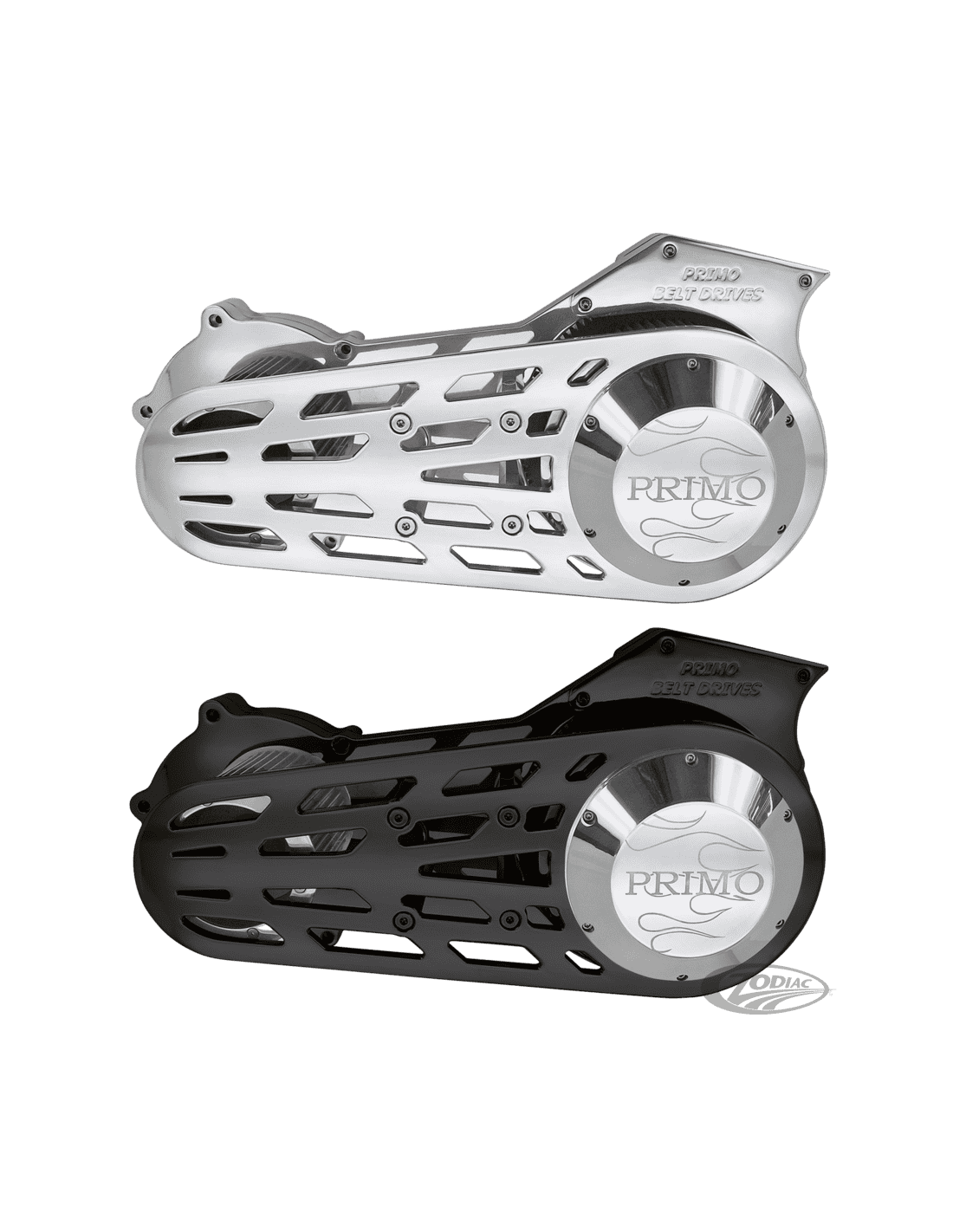 Rivera PrimoLa Primo offre le cinghie di ricambio in due resistenze diverse, una HTD per un uso normale come quella fornita nei kit della Primo. L'altra cinghia è in kevlar, molto più resistente se paragonata a quella di serie per il diverso intreccio interno. Le cinghie in kevlar sono consigliate da utilizzare su motori potenti di grossa cilindrata ed ovviamente sono usate sulla primaria dei dragster da oltre 600 HP di Ton Pels e molti altri.