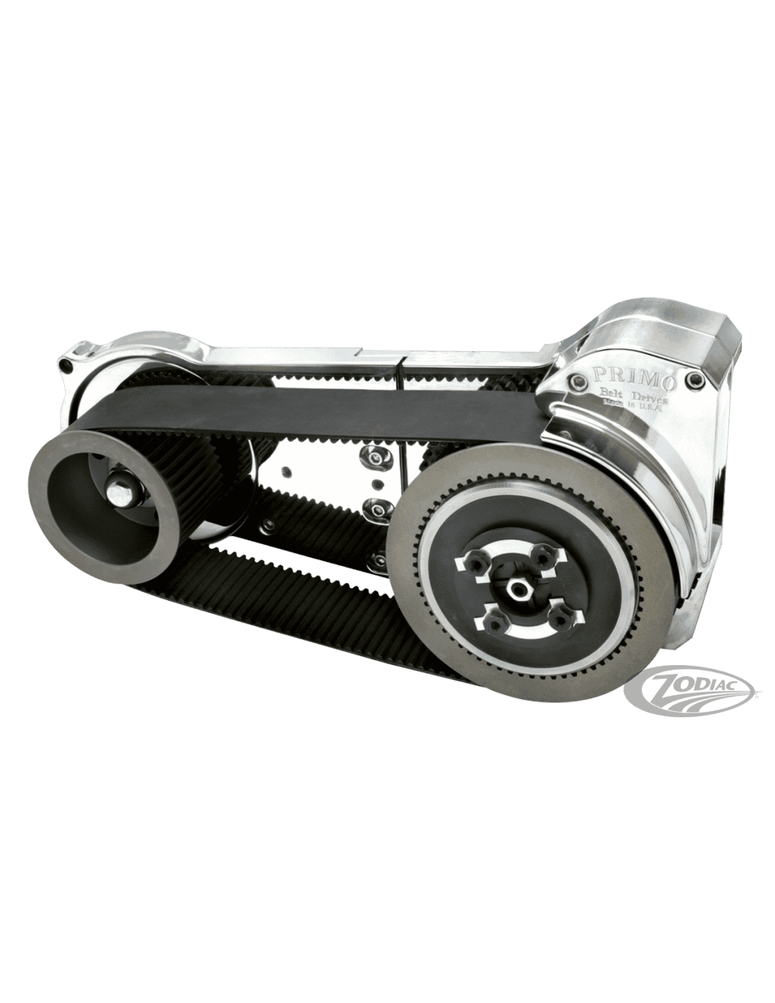 Rivera PrimoQuesti kit di trasmissione a cinghia surclassano tutti gli altri per lavorazione, adattabilità, finitura e prestazioni. I kit Primo contengono puleggia anteriore e posteriore, cinghia da 2" o 3", e kit frizione Pro-clutch completo con molla a diaframma. I kit completi includono inoltre una piastra di supporto in alluminio collega il motore al cambio, copricinghia e un supporto cuscinetto con cuscinetto installato. I kit per i modelli con avviamento elettrico includono anche l'alloggiamento per il motore di avviamento e l'estensione per l'albero dell'avviamento nonché, tutta la bulloneria necessaria. L'installazione del kit ZPN720504 nei modelli Shovelhead a 4 marce richiede l'acquisto separato di un motore d'avviamento dal 1989 al 1993 o dal 1994 al 2006. Per i costruttori sono disponibili inserti puleggia e dadi disassati, sono elencati nelle parti di ricambio .