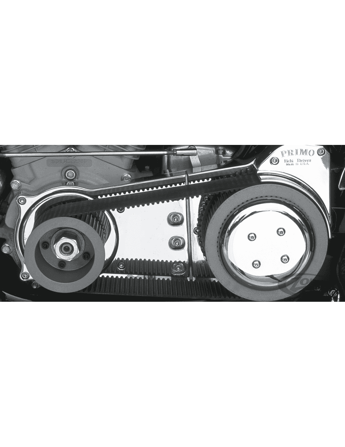 Rivera PrimoIl nuovo kit primaria scoperta di Primo da 3 1/2", è stato progettato e costruito per gestire tutta la potenza che i vostri motori Stroker o Big Bore possono erogare. È' il primo kit con cinghia da 3 1 /2" di larghezza e 14mm di altezza disponibile. Un kit completo e semplice da installare, fornito di frizione Pro Clutch, puleggia anteriore e posteriore, cinghia da 3 1/2", estensione motore d'avviamento, coperchio accensione, copricinghia laterale, piastra di supporto motore in alluminio billet in due pezzi lavorata a CNC, bulloneria e istruzioni per il montaggio. La foto non mostra la copertura cinghia laterale e le coperture rotore e frizione a cupola.