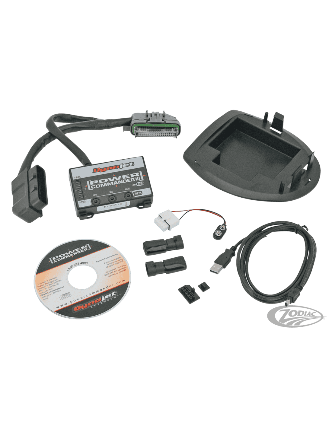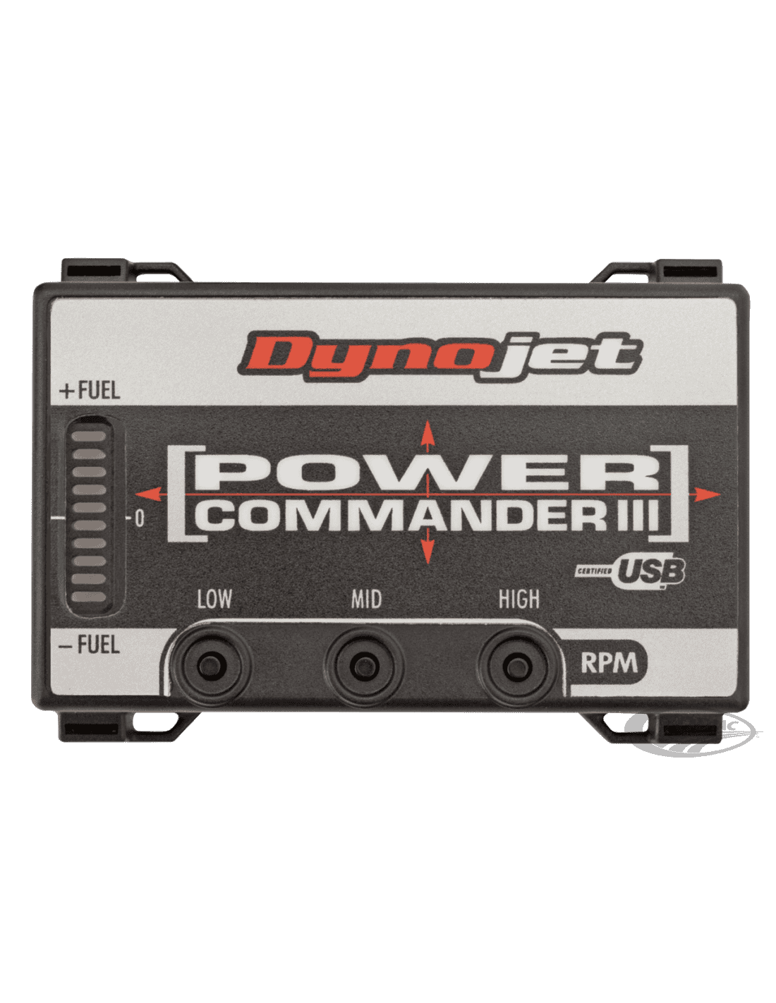 Dynojet ResearchDynojet's Power Commander III represents a breakthrough technology for motorcycles with OEM Fuel Injection. Each unit allows you to adjust both Fuel Injection and ignition, and comes already programmed with a specific map, designed to improve performance over stock. In addition, several maps for alternate tuning packages are include on a CD-ROM and can be uploaded into the Power Commander III module with a Windows 95/98/2000/XP computer and the included PC link thru your computer's USB port. If no computer is available, the fuel curve can be adjusted using the three touch buttons on the faceplate, where LED's for rich/lean mixture and engine RPM display the adjustments. Dynojet is continuously mapping different combinations for each bike. These special maps are downloadable at www.powercommander.com. The Power Commander III features racetrack proven technology in a lightweight, compact and sealed unit, simple installation with no wiring modifications and no permanent changes to your stock ECU, providing crisper throttle response, increased horsepower and optimal fuel consumption.
