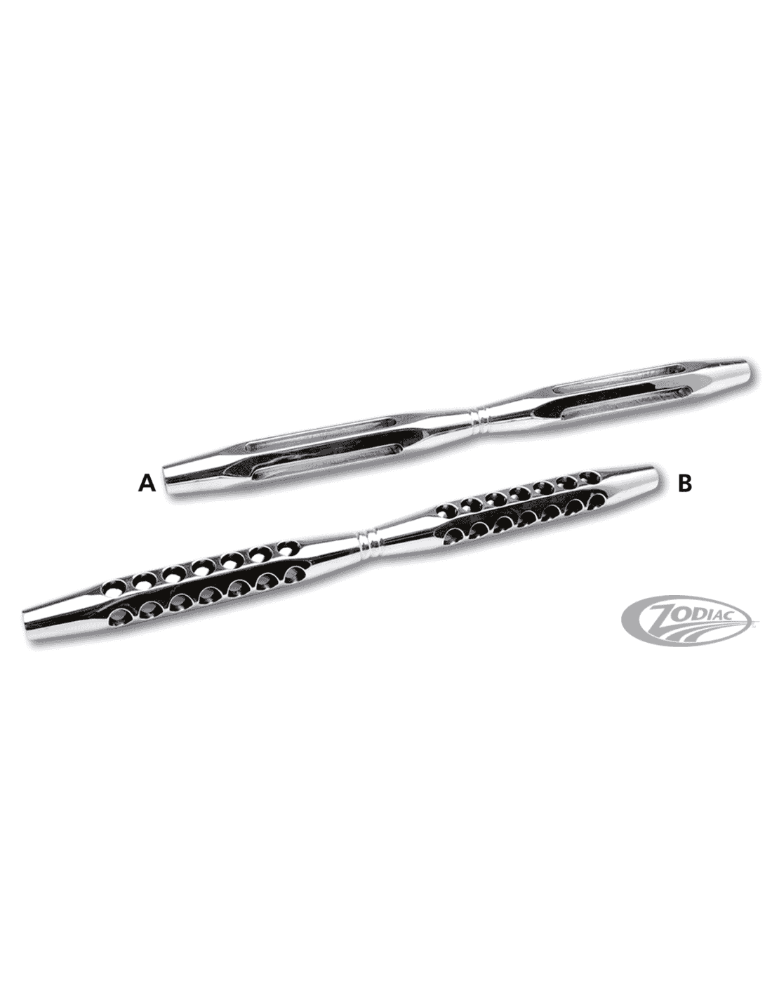 Questi rinvi cambio sono realizzati in alluminio billet di alta qualità e presentano un'elegante finitura cromata, che li rende non solo funzionali ma anche esteticamente accattivanti. Ogni rinvio cambio è fornito con due giunti per il montaggio, garantendo un'installazione semplice e senza problemi.