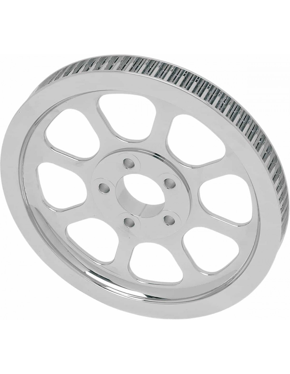 Drag SpecialtiesPuleggia cinghia posterioreAlluminio pressofuso lavorato con finitura cromata lucidata su entrambi i lati Design in stile OEM a 70 denti Diametro al centro di 0,220”