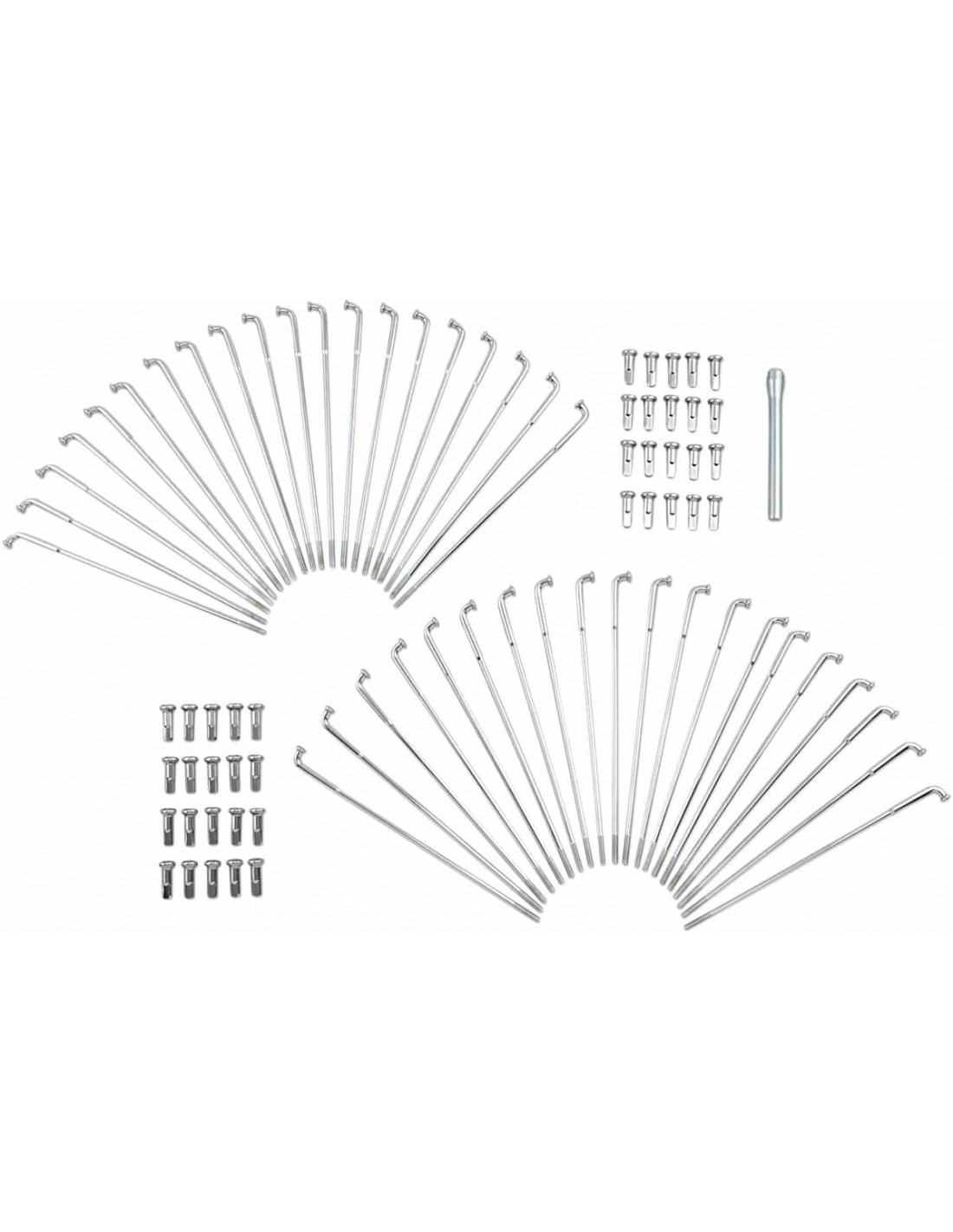 Drag SpecialtiesSet raggi cromati in acciaio inossidabileSet di raggi resistenti e di qualità, utilizzati in applicazioni di serie e personalizzate Tutti i set includono nippli e chiavi tiraraggi per l' installazione Non adatti per cerchi profilati del tipo tubeless/OEM
