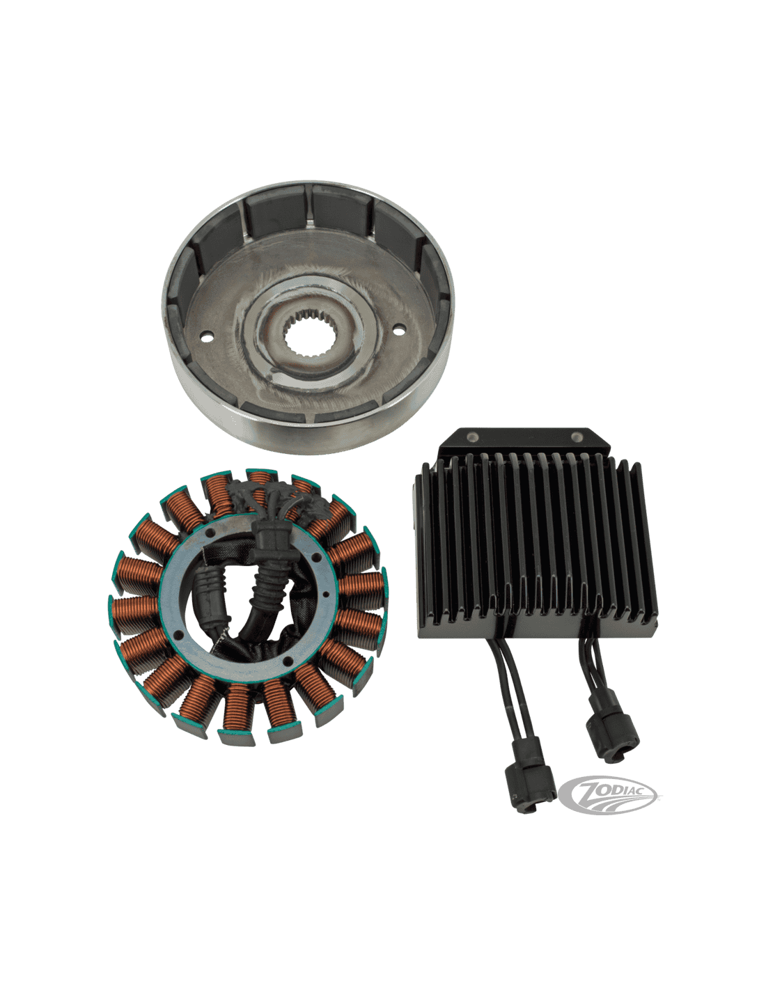 AccelSistemi completi di ricarica con lo stato dell'arte degli statori Cycle Electric, regolatori a prova di proiettile e rotori OEM. Offrono migliore erogazione a bassa velocità e una carica della batteria più regolare. Cycle Elctric dichiara che non troverete sistemi di ricarica più duraturi e affifdabili. 2 anni di garanzia. Disponibili come ricambio di serie o kit Trifase con potenza maggiore.