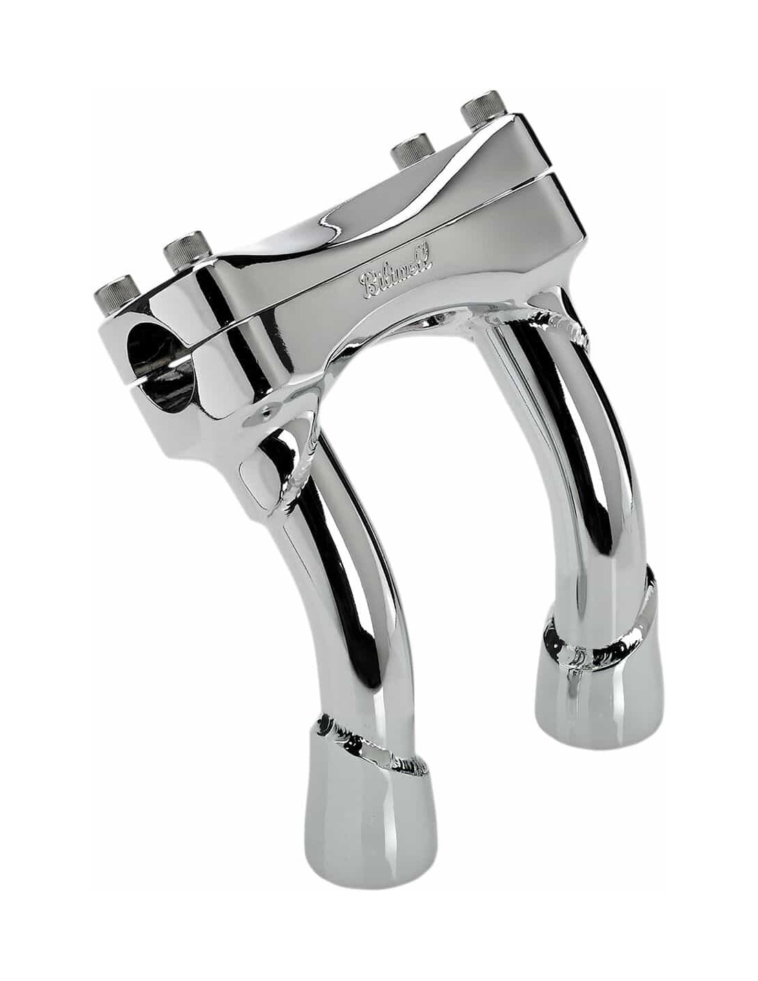 BiltwellRiser manubrio MurdockCover superiore monopezzo in acciaio lavorato per microfusioneBarre verticali saldate TIG in acciaio al cromo-molibdeno 4130 con spessore della parete di 0,120" e filettature di 1/2"-13Il design delle viti riser si adatta perfettamente alle staffe tachimetro/contagiri su molti modelli Harley-Davidson® di seriePer manubri di 1”