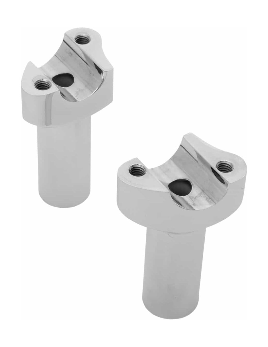 Drag SpecialtiesRiser manubrio forgiato in alluminioRiser forgiati in alluminio 6061-T6 per la massima resistenza Preforati e filettati per viti riser di 1/2”-13 (viti vendute separatamente) Lavorazione a CNC per garantire un adattamento perfetto su manubri con zona di bloccaggio con diametro di 1" Ideati per adattarsi ad applicazioni con attacchi aventi una distanza l'uno dall' altro di 3-1/2" e sono compatibili con la maggior parte di cover superiori in stile OEM con fori di montaggio sfalsati