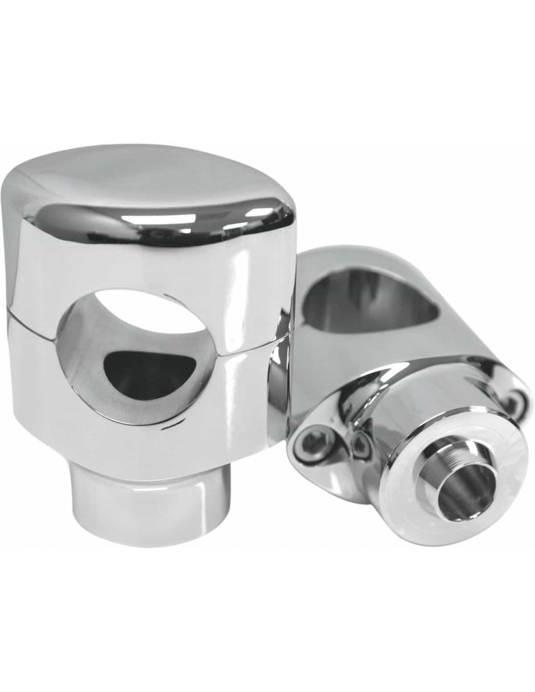 Drag SpecialtiesKit riser manubrio Big Buffalo da 1-1/2" per modelli con forcella SpringerPer consentire il montaggio di manubri con diametro di 1-1/2" su modelli Springer Il kit include due riser con cover superiori Il materiale di montaggio della cover superiore è nascosto in modo da garantire un aspetto liscio e pulito Made in USA