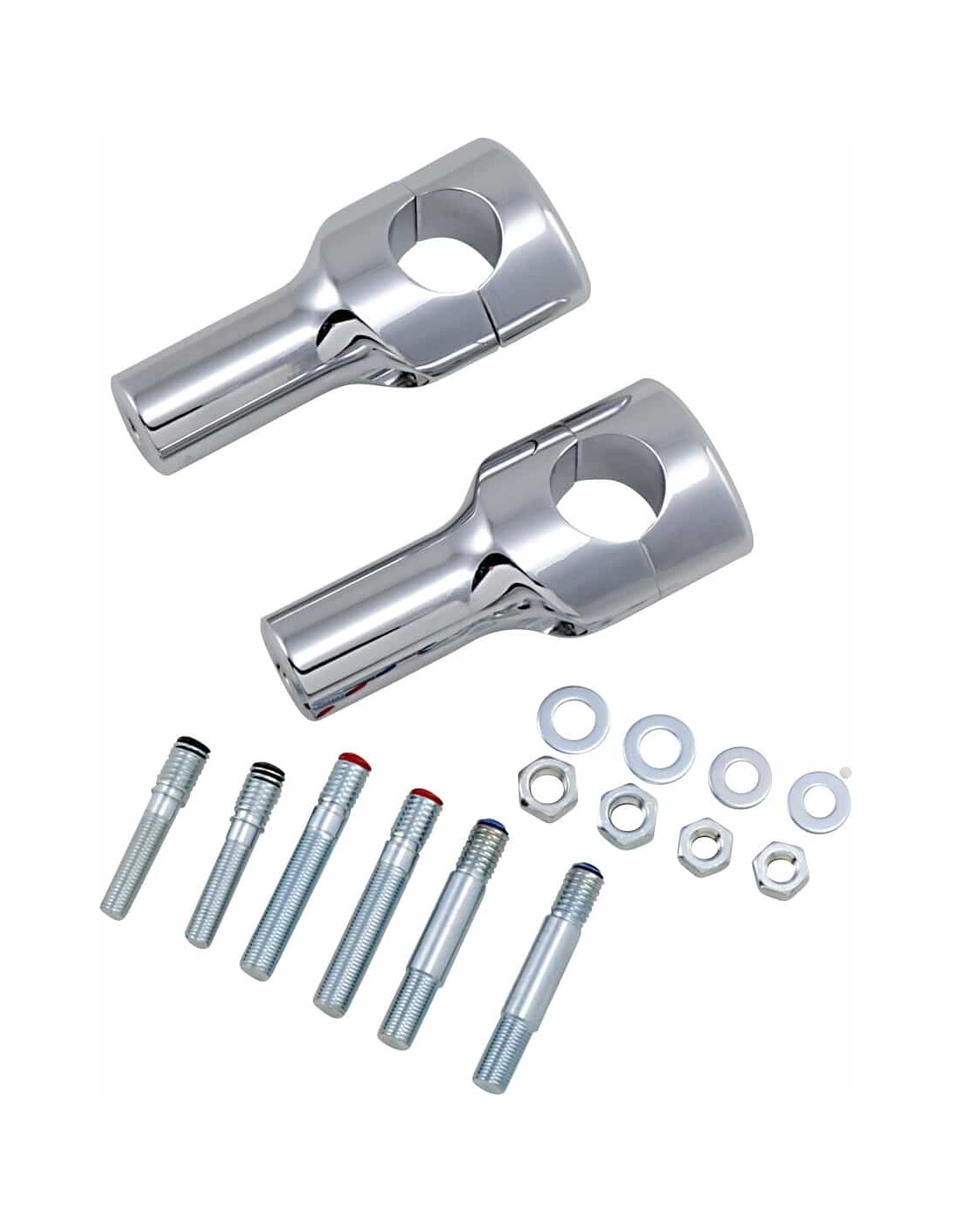 Drag SpecialtiesRiser manubrio Big BuffaloRiser in alluminio billet fresato Utilizzabili con manubri Big Buffalo da 1-1/2" di Drag Specialties o altri manubri con zona di bloccaggio del diametro di 1-1/2" Utilizzano viti riser di 1/2"-13, venduti separatamente Made in USA