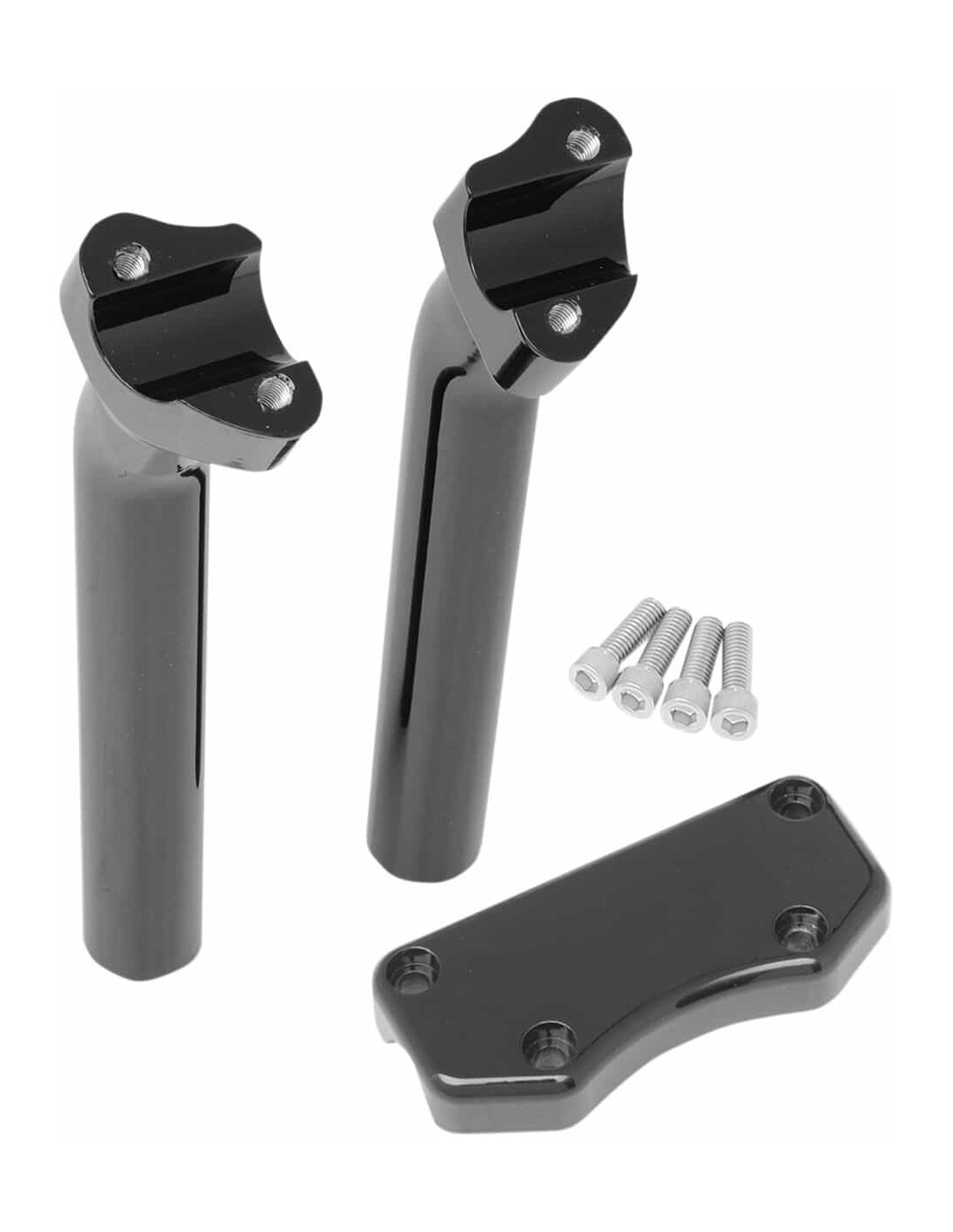 Drag SpecialtiesKit riser manubrio e cover superioreVendita in kit composti da due riser, una cover superiore monopezzo e il materiale necessario per il montaggio Compatibili con qualsiasi manubrio con un diametro di 1" o 1-1/2" nella zona di bloccaggio Filettati per viti riser di 1/2”-13 Made in USA