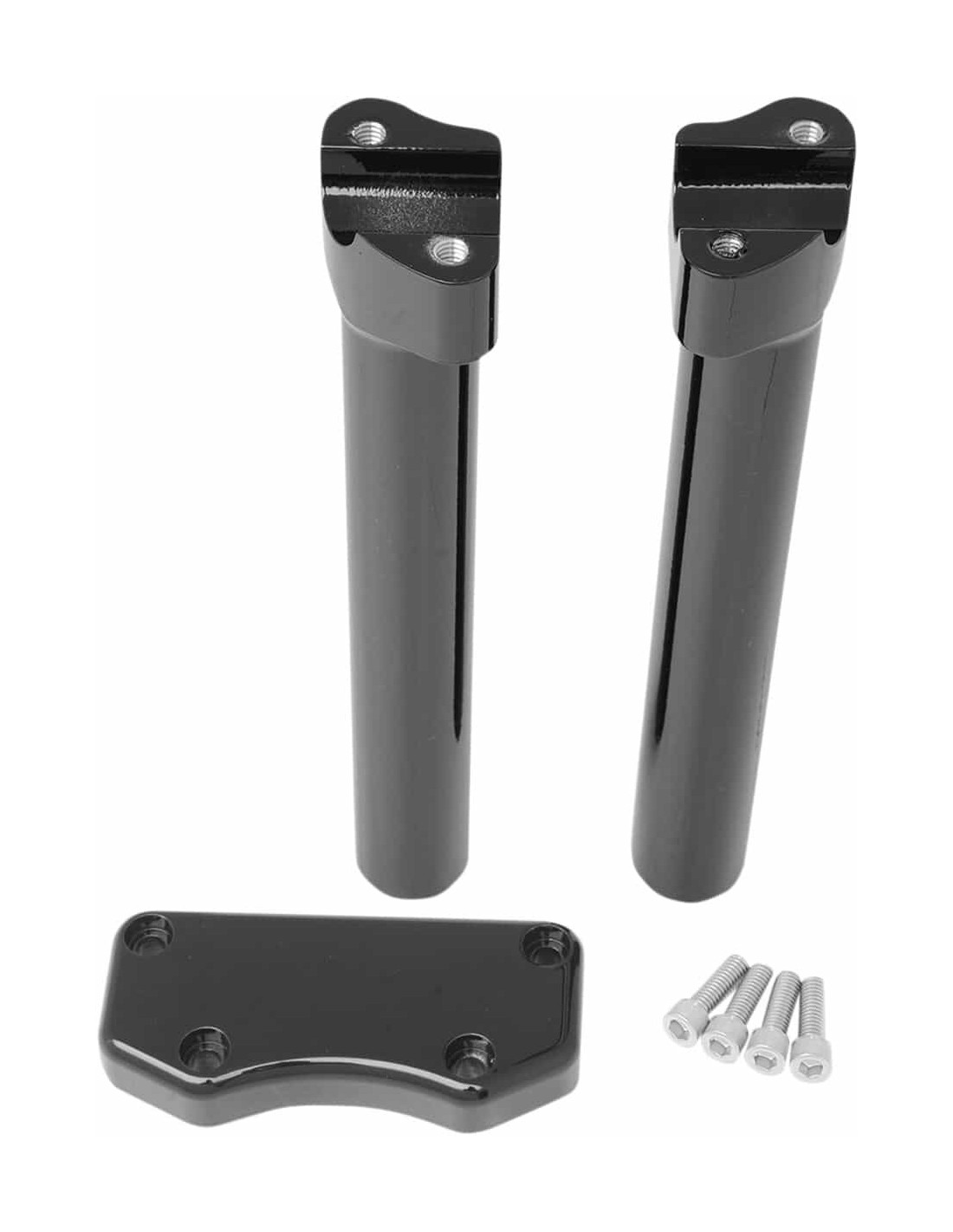 Drag SpecialtiesKit riser manubrio e cover superioreVendita in kit composti da due riser, una cover superiore monopezzo e il materiale necessario per il montaggio Compatibili con qualsiasi manubrio con un diametro di 1" o 1-1/2" nella zona di bloccaggio Filettati per viti riser di 1/2”-13 Made in USA
