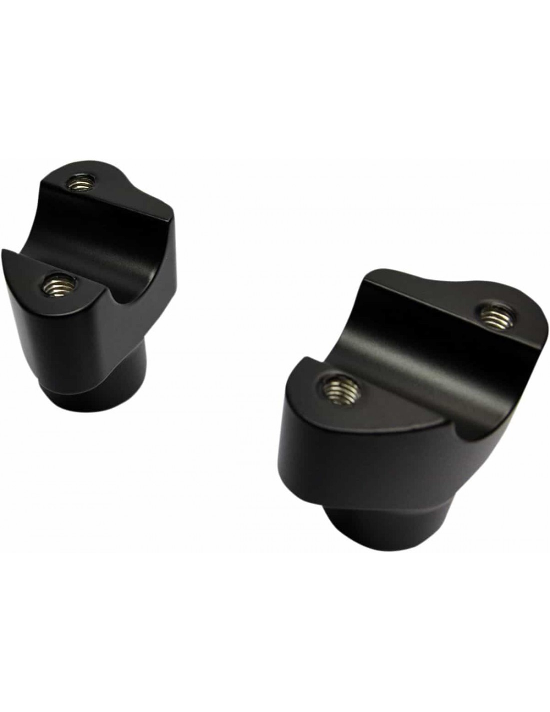 Drag SpecialtiesRiser manubrio Buffalo in alluminio billetRiser in alluminio billet fresato Compatibili con qualsiasi manubrio con zona di bloccaggio con diametro di ?1" e riser con diametro di 1- 1/4" così da completare lo stile dei manubri con diametro di 1-1/4" Possono essere utilizzati insieme ad attacchi manubrio Buffalo o in stile OEM con fori di montaggio sfalsati I riser arretrati hanno un pullback di 1” Tutti i riser usano viti di 1/2”-13; venduti separatamente Made in USA