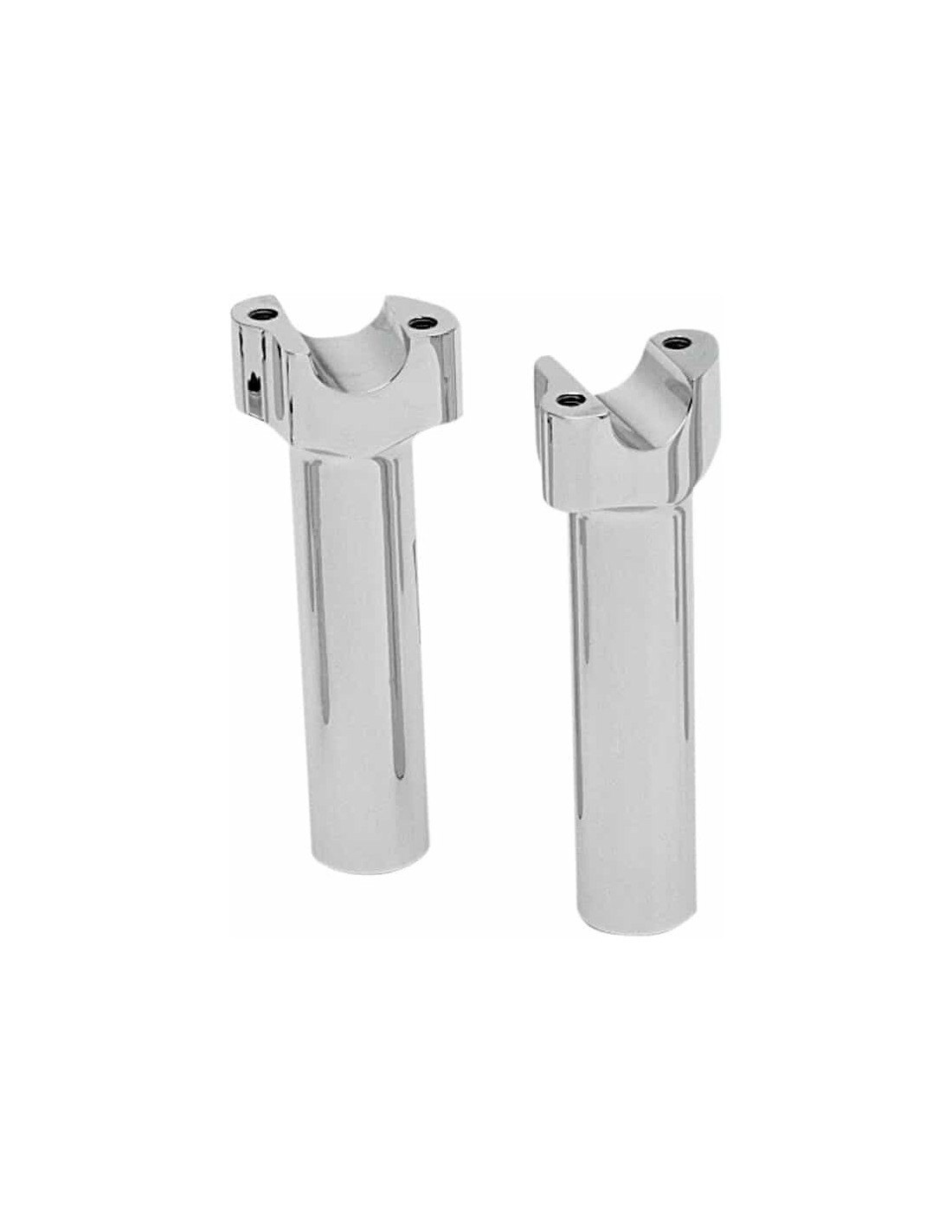 Drag SpecialtiesRiser manubrio Buffalo in alluminio billetRiser in alluminio billet fresato Compatibili con qualsiasi manubrio con zona di bloccaggio con diametro di ?1" e riser con diametro di 1- 1/4" così da completare lo stile dei manubri con diametro di 1-1/4" Possono essere utilizzati insieme ad attacchi manubrio Buffalo o in stile OEM con fori di montaggio sfalsati I riser arretrati hanno un pullback di 1” Tutti i riser usano viti di 1/2”-13; venduti separatamente Made in USA
