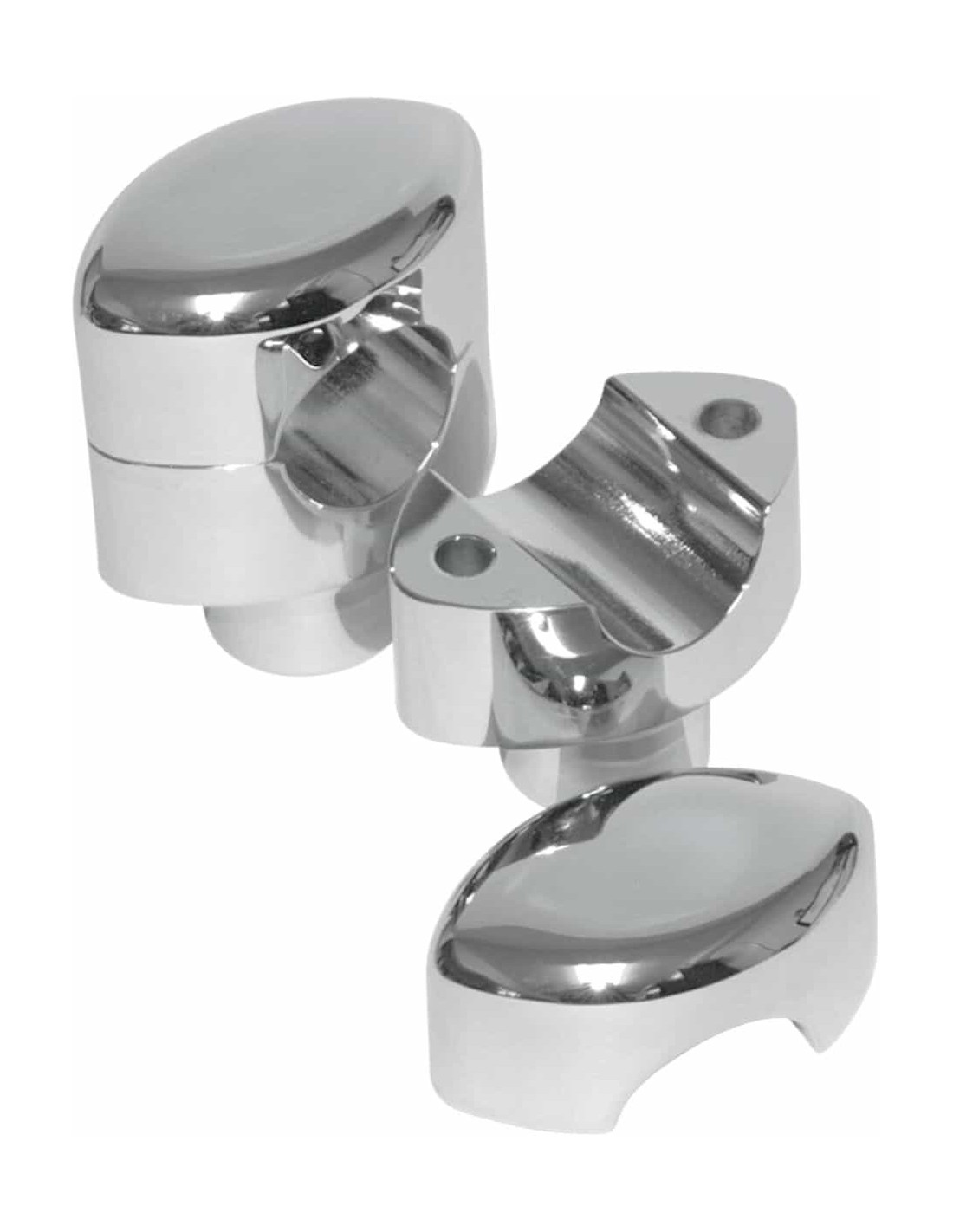 La ChoppersRiser Hefty per manubri da 1"Lavorate a CNC in alluminio billet Preforati e filettati per viti di montaggio di 1/2”-13 (venduti separatamente)< /li> Tutte le versioni includono tappi per riser con materiale di montaggio nascosto per un look pulito Made in the USA