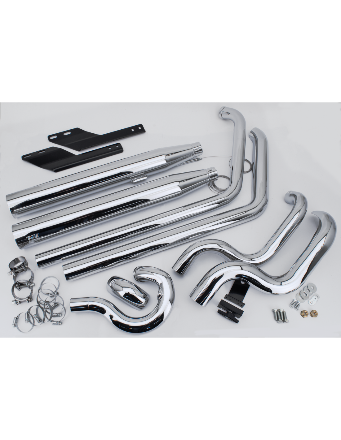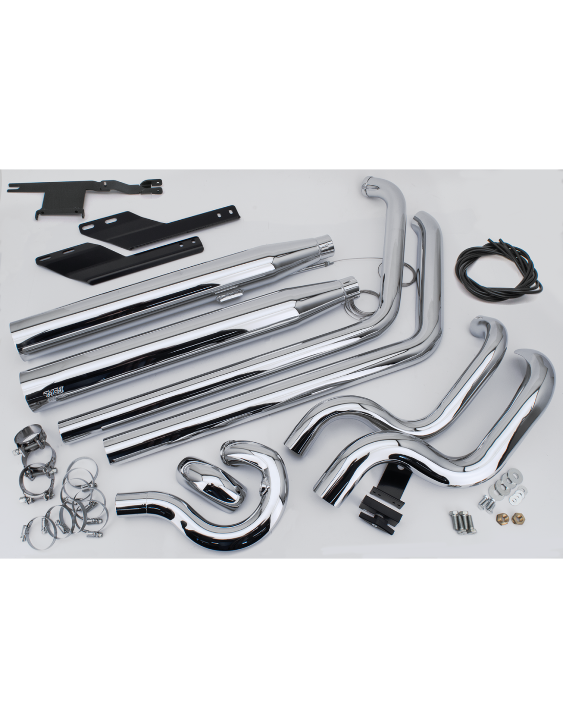MCJSistema di scarico completo 2-in-2 approvati E, con valvola di scarico regolabile che vi permetterà di variare il rumore della vostra moto ma mantenendola nella legalità. Il collettore anteriore esce sulla destra, quello posteriore si incrocia ed esce sulla sinistra. Questi scarichi sono forniti completi di una leva per la regolazione manuale che può essere installata sul manubrio o sotto il serbatoio. Un motorino di regolazione elettrico opzionale con chiave a telecomando è disponibile separatamente. Tappi finali vanno ordinati separatamente.