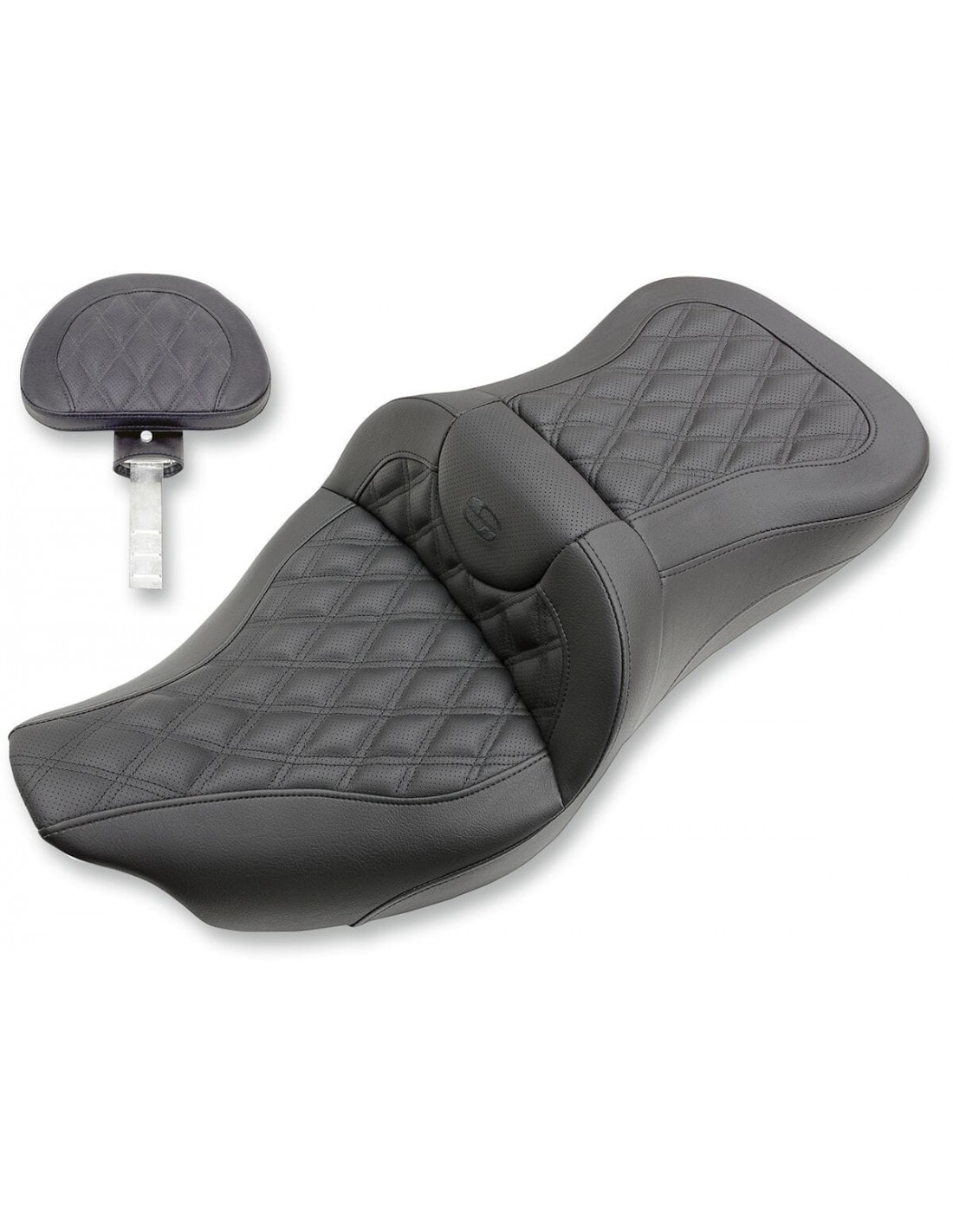 SaddlemenSella road sofa a distanza maggioratail raffinato design a zone divise separa la superficie di seduta dal supporto lombare per ridurre la pressione sul coccige e sulla schiena e garantire quindi il massimo comfort sui lunghi viaggi la sella è dotata di una combinazione di spugna a densità progressiva e inserti saddlegel™, che assicurano il massimo comfort per il pilota e il passeggero rivestimento morbido imbottito, sostenuto da un sottostante strato di spugna per offrire un comfort e uno stile incredibile estende l'area di seduta del pilota di ben 2" copertura con bottoni in stile classico made negli stati uniti