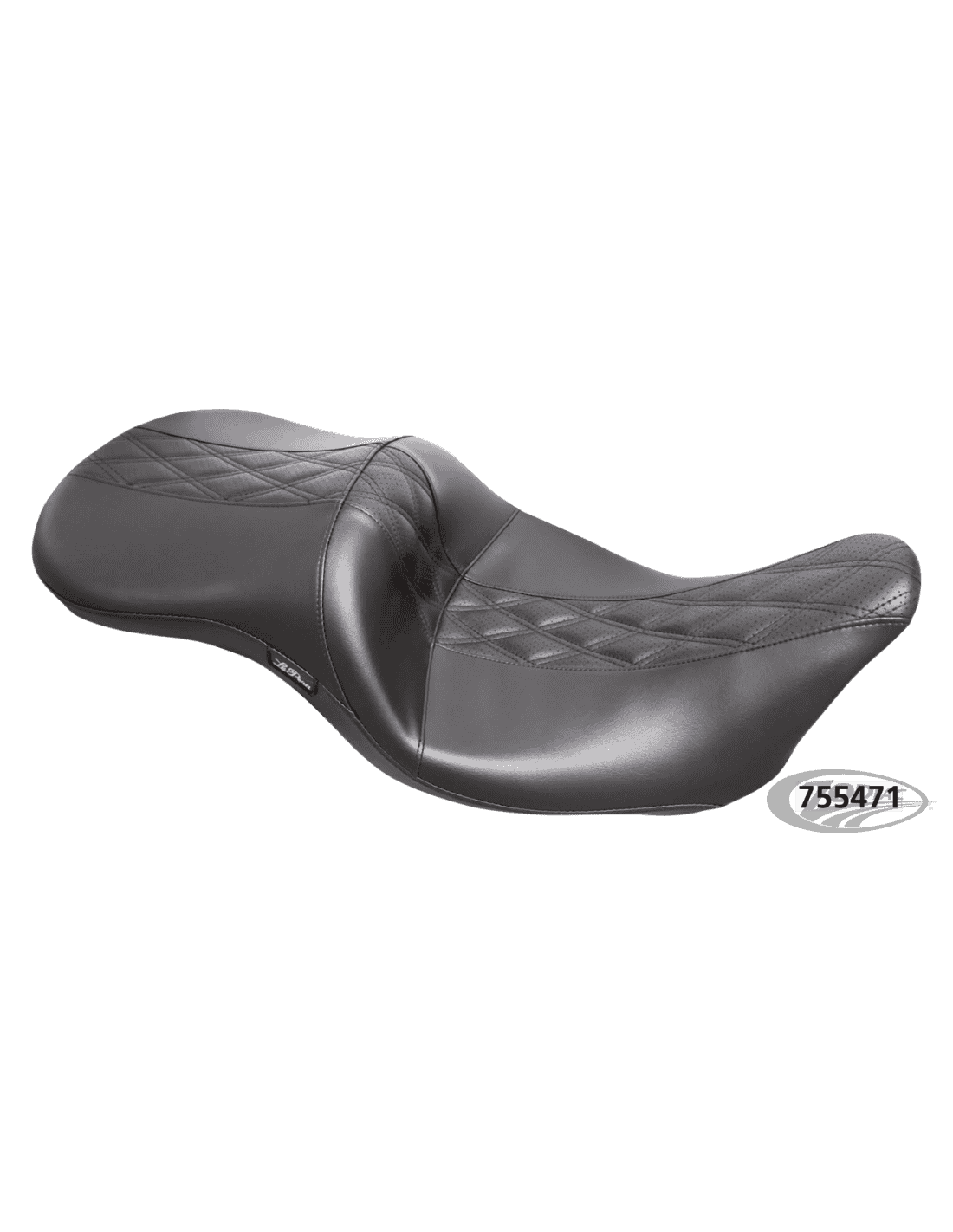 La sella Maverick offre look e comodità superiore con una seduta di 15" (38cm) per il guidatore e di 14" (35,5cm) per il passeggero. La sella del Road King non ha l'estensione anteriore.