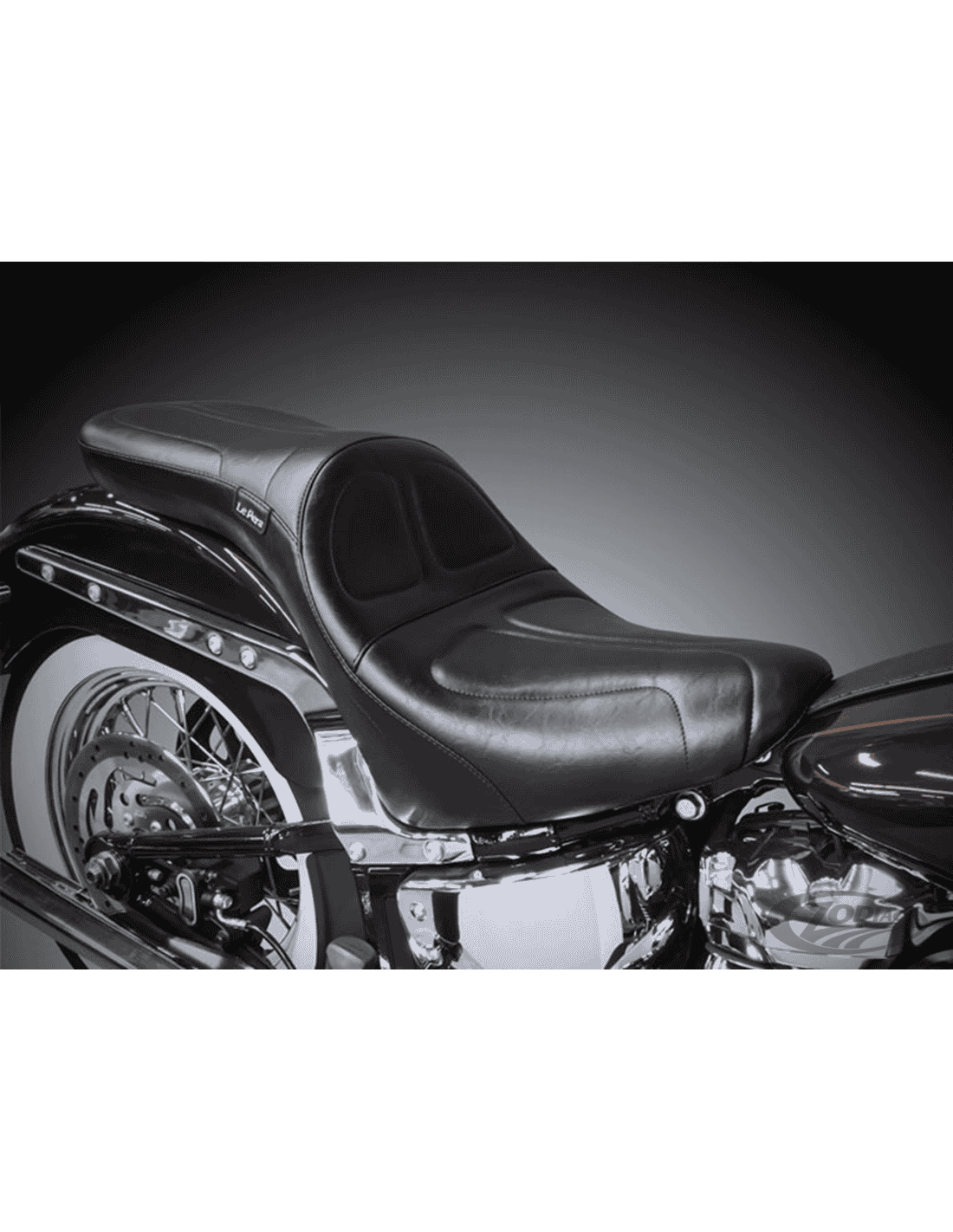 Prendi possesso della strada con questa sella che offre puro lusso da turismo. L'area di seduta del conducente profondamente sagomata è larga 14" con 7" di supporto per la schiena l'area di seduta del passeggero 11 1/2" larghezza.