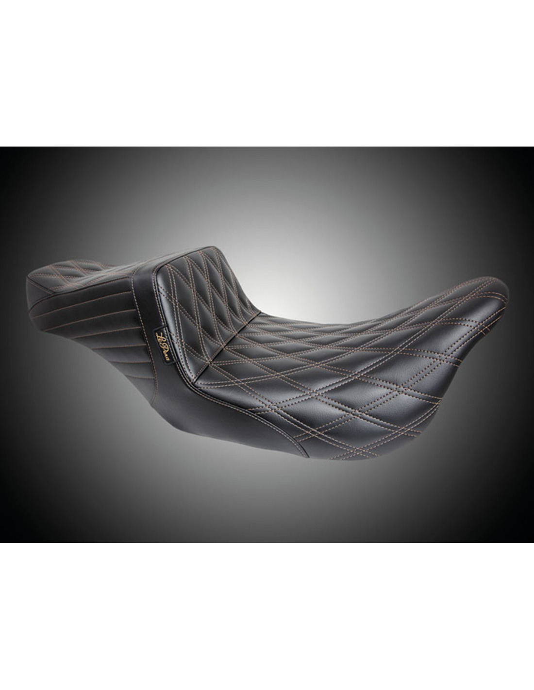 Le PeraQuesta è la versione 2-up della sella Kickflip di Le Pera. Che sia più comodo per il passeggero o semplicemente un'altra piattaforma per far esplorare il vostro lato avventuroso, la coda montata vi darà quello che state cercando. I sedili standard e Daddy Long Legs offrono al conducente un'area di seduta larga 32cm (12 1/2") e al passeggero 19cm (7 1/2"). La versione Daddy Long Legs (Gambe lunghe) pone il conducente 2" (5cm) più indietro nel sedile. La versione Up Front offre al conducente un'area di seduta larga 30 cm (11 3/4").
