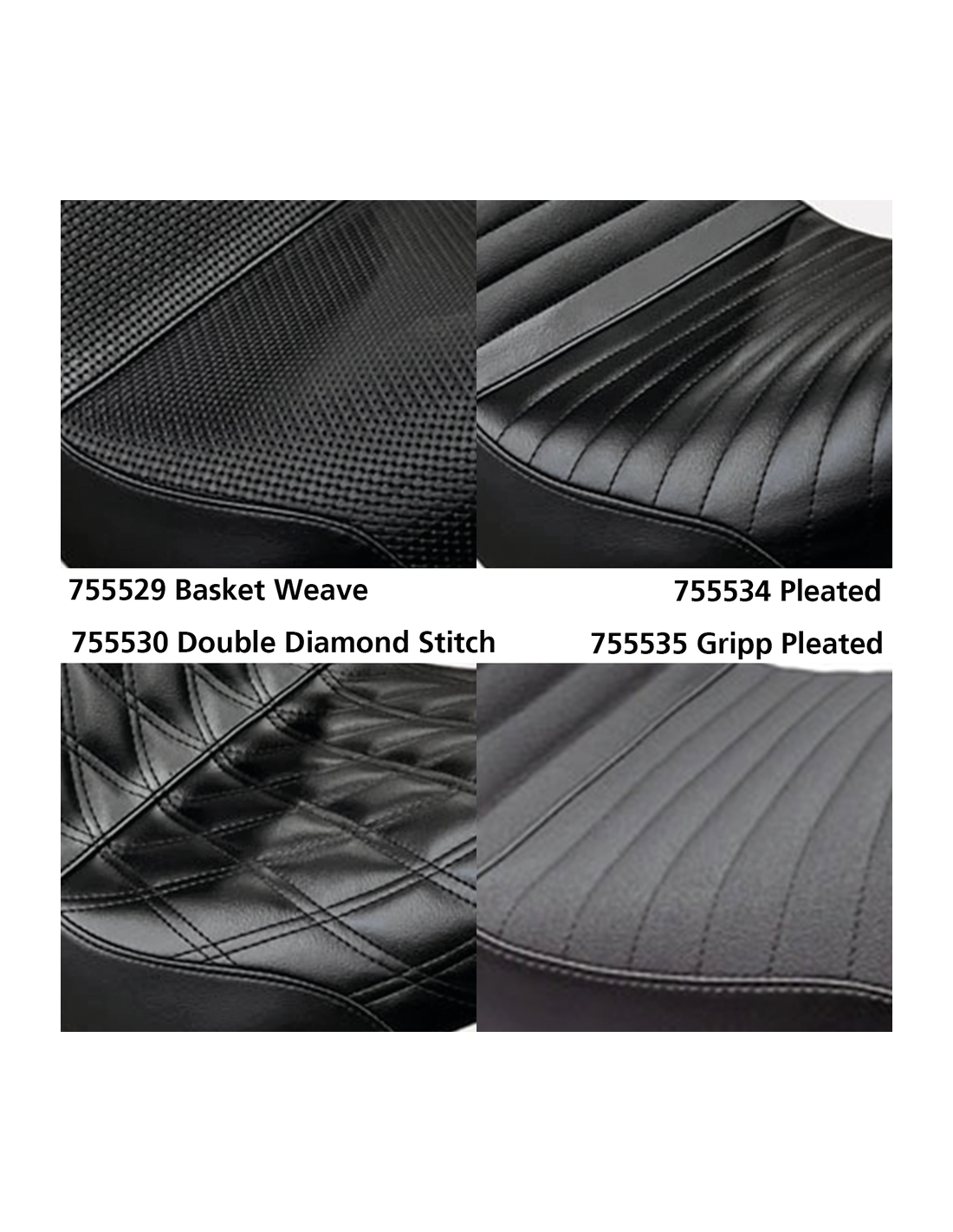 Le PeraQuesta è la versione 2-up della sella Kickflip di Le Pera. Che sia più comodo per il passeggero o semplicemente un'altra piattaforma per far esplorare il vostro lato avventuroso, la coda montata vi darà quello che state cercando. I sedili standard e Daddy Long Legs offrono al conducente un'area di seduta larga 31cm (12 1/4") e al passeggero 18cm (7" ). La versione Daddy Long Legs (Gambe lunghe) pone il conducente 2" (5cm) più indietro nel sedile. La versione Up Front sposta in avanti il conducente ed utile per i diversamente alti