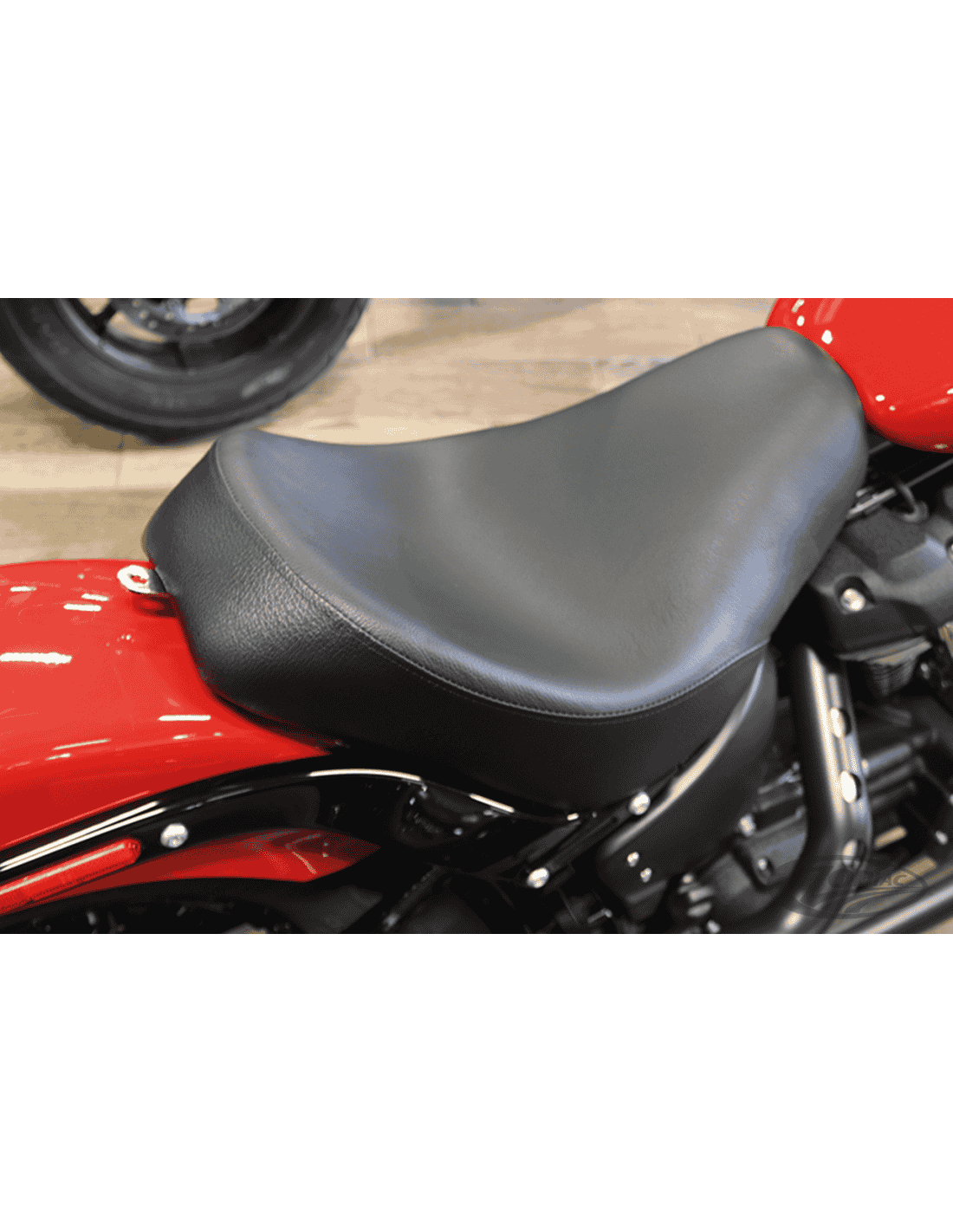 Sella singola con rivestimento in Naugahyde nero e schiuma sagomata su una base in polimero rinforzato con fibra di vetro. Per l'installazione è necessario praticare un foro da 5/16" nel parafango posteriore. Il sedile non è compatibile con i sedili passeggero.