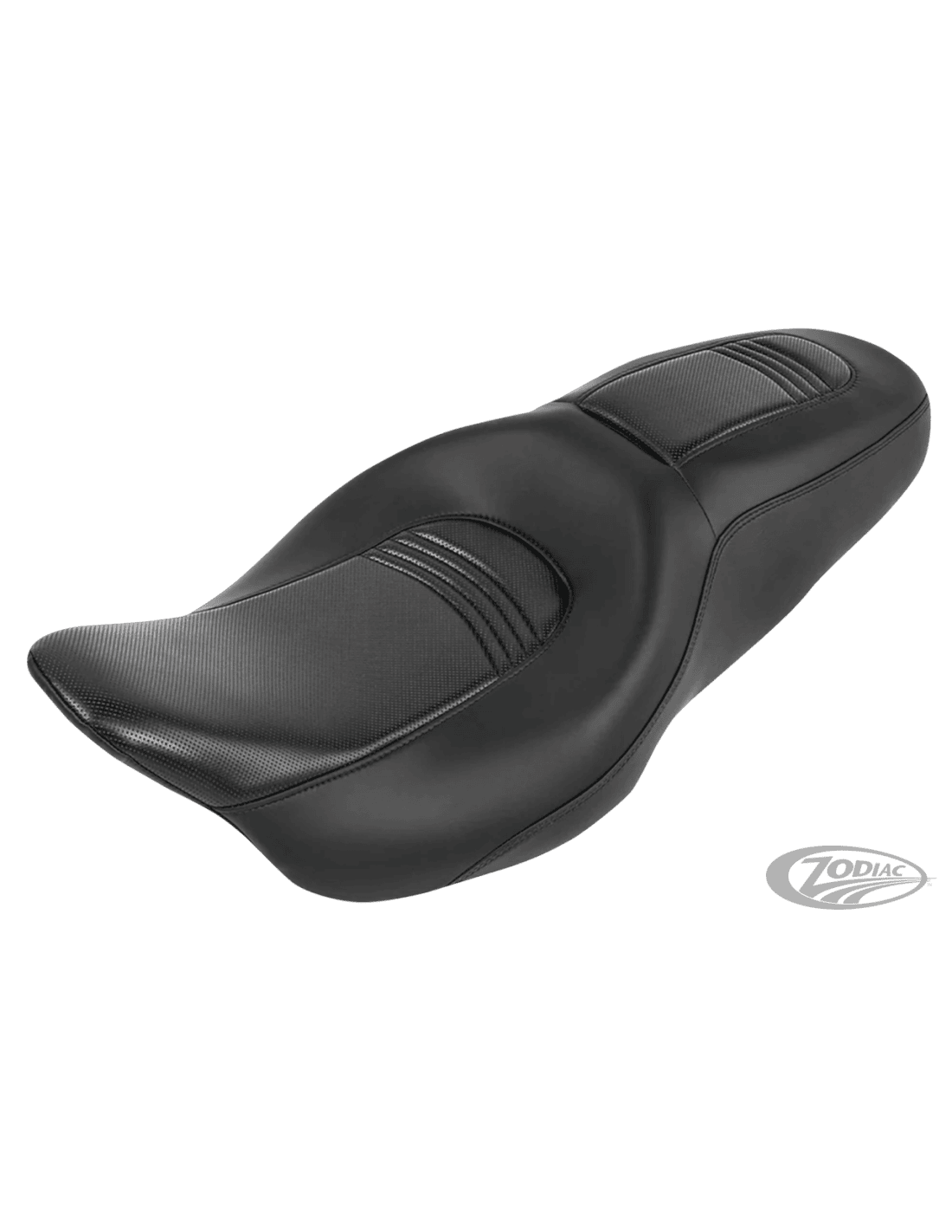 C.C. RiderLa sella 2-Up dal design ribassato è dotata di un cuscino del guidatore sagomato che favorisce il sostegno della parte bassa della schiena e di un muso più stretto rispetto a quello di serie per consentire di raggiungere più facilmente il terreno quando si è fermi.La sella è lunga 32,6", l'area del conducente è larga 15,4", quella del passeggero 9,8".